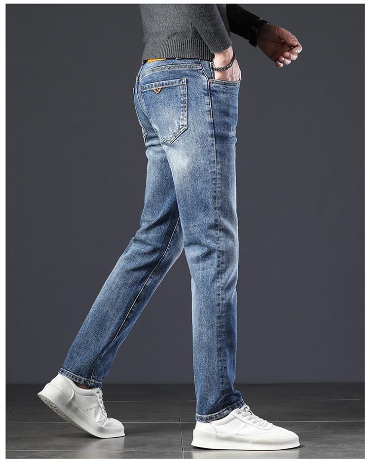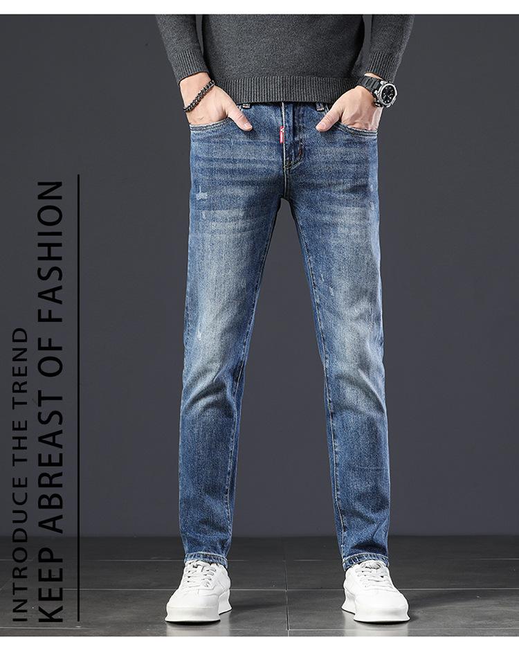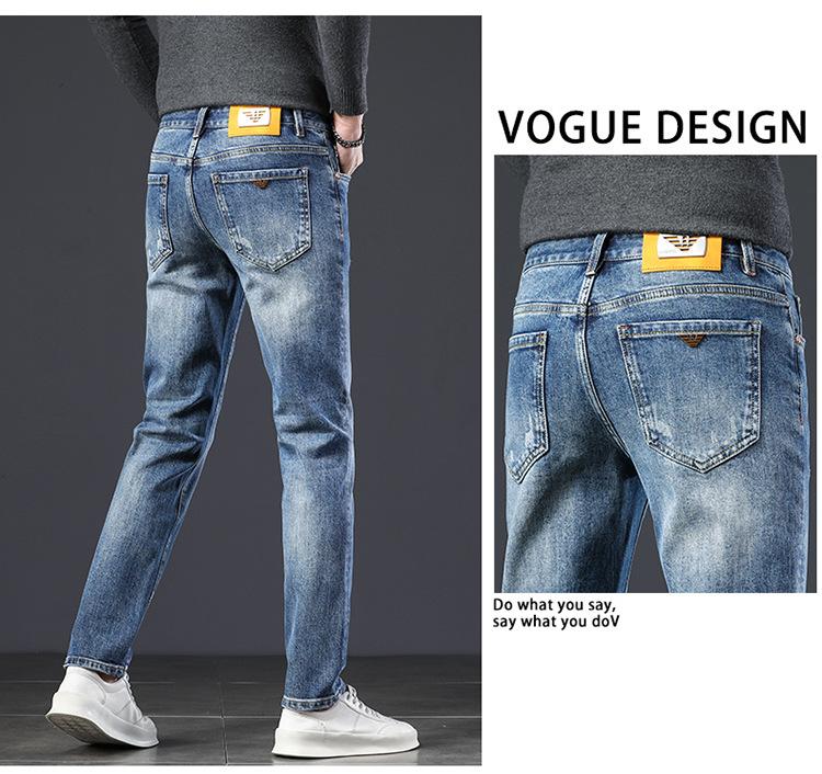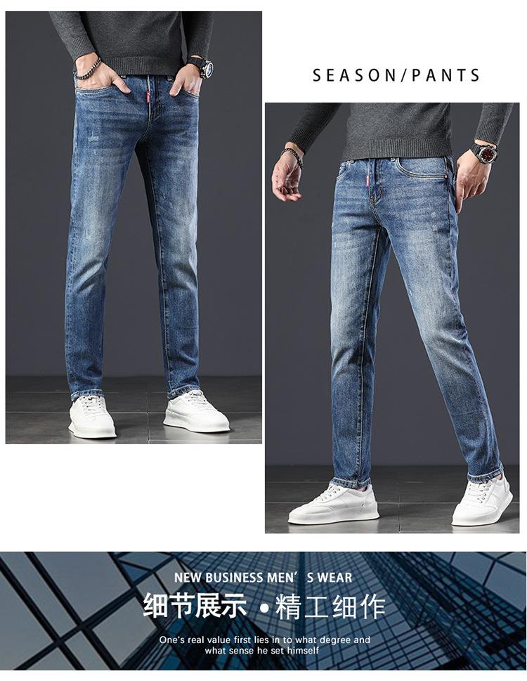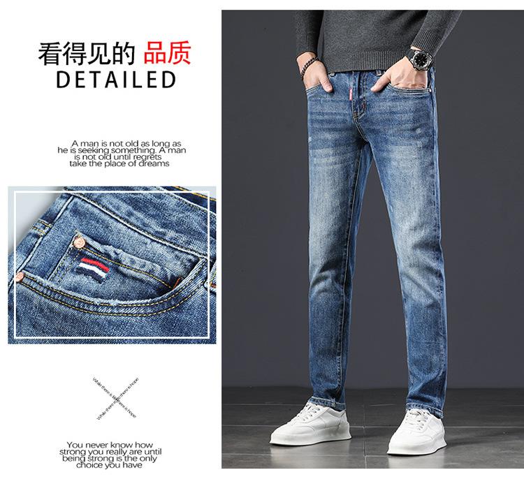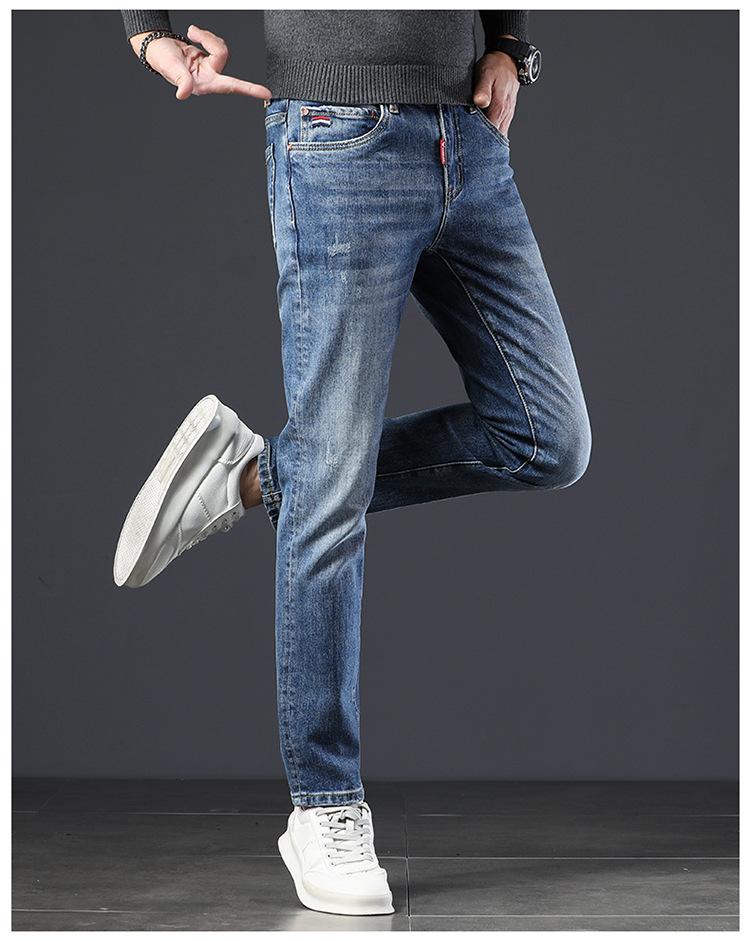 Pantalones vaqueros de marca europea y americana, otoño e invierno 2023, gruesos, elásticos, ajustados, rectos, pantalones largos casuales para hombres jóvenes