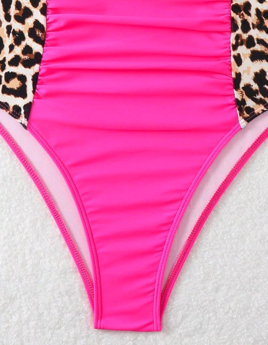 Traje de baño de una pieza para mujer, nuevo, con estampado de leopardo europeo y americano, de color sólido, sin espalda, conservador, sexy, de moda, en stock, venta directa, 2024