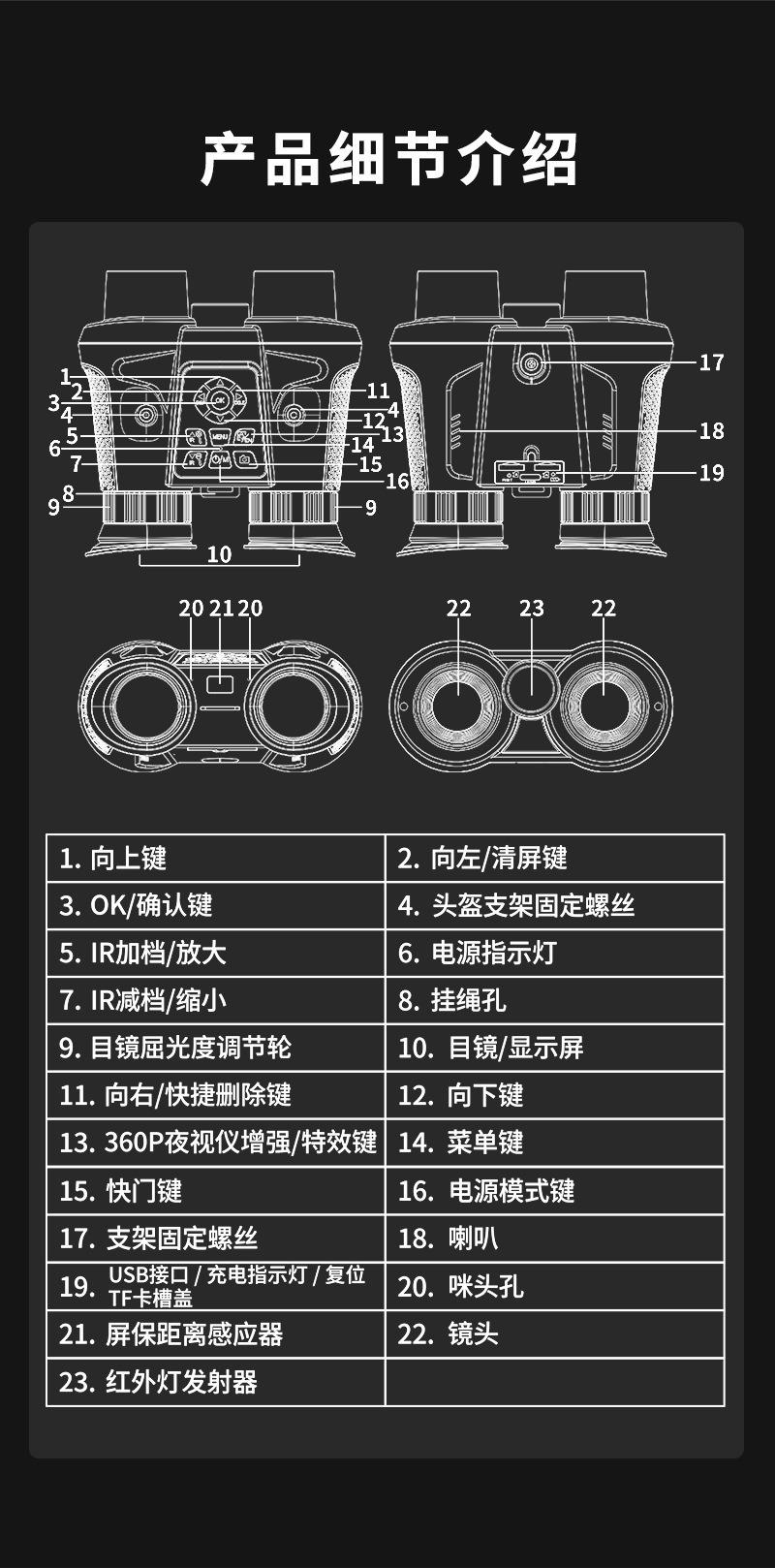 Dispositivo binocular de visión nocturna montado en la cabeza SUNCORE para exteriores, binocular digital infrarrojo de alta definición para visión nocturna en blanco y negro, telescopio de visión nocturna