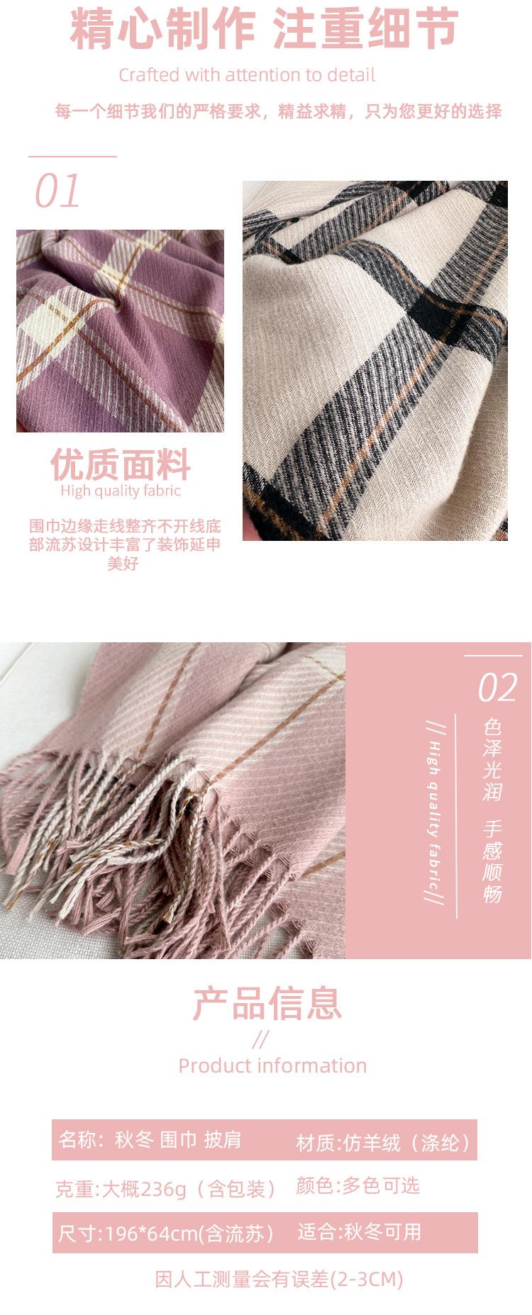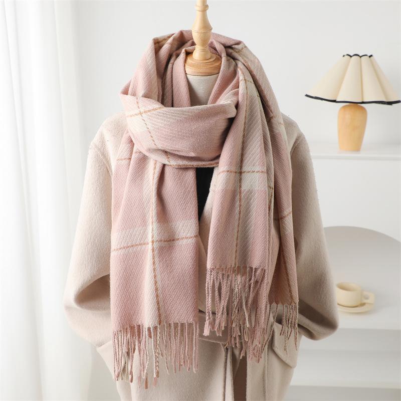 Bufanda chal cálida de imitación de cachemira a cuadros, unisex, de moda para otoño e invierno, con borlas que combinan con todo.
