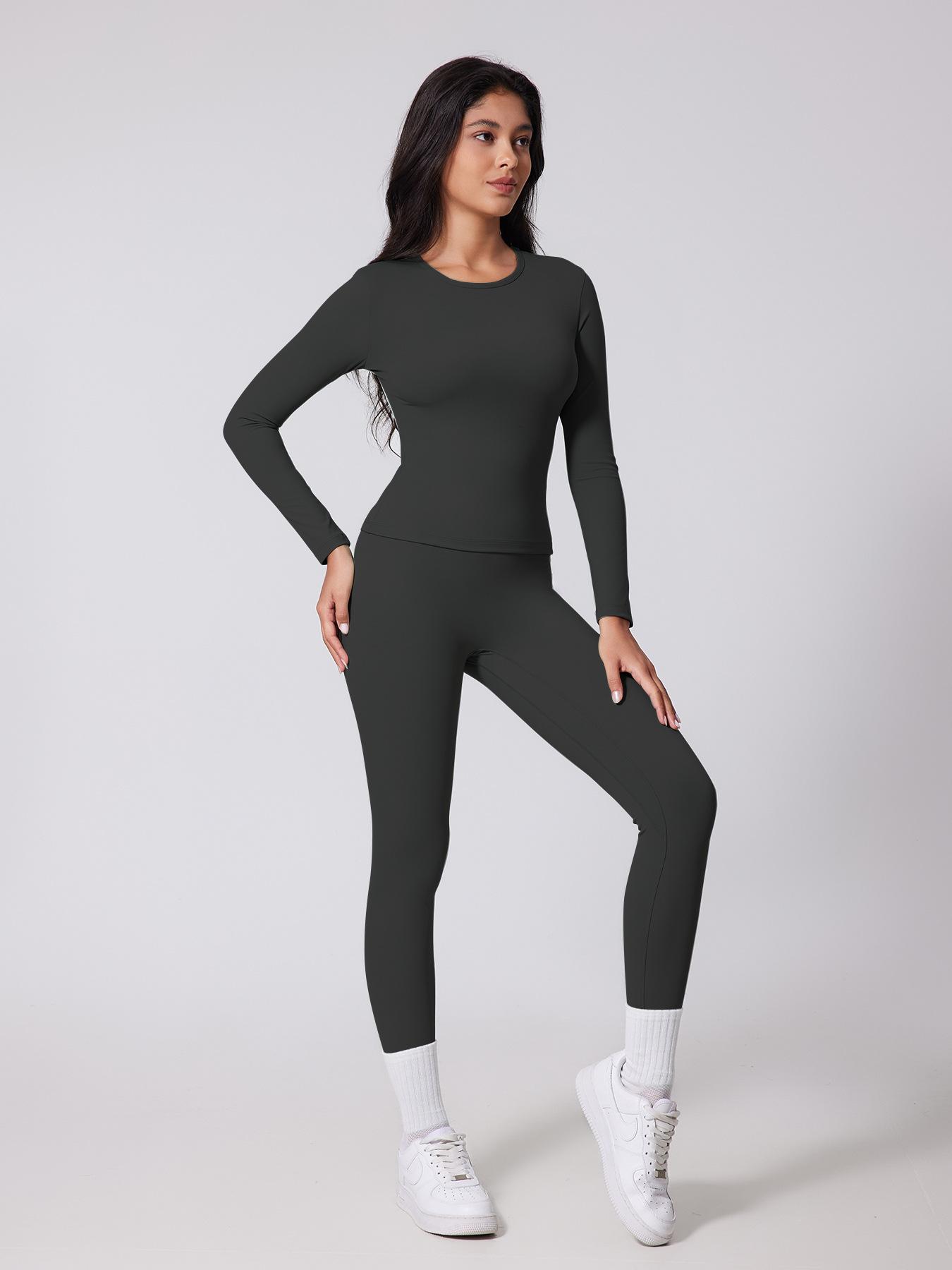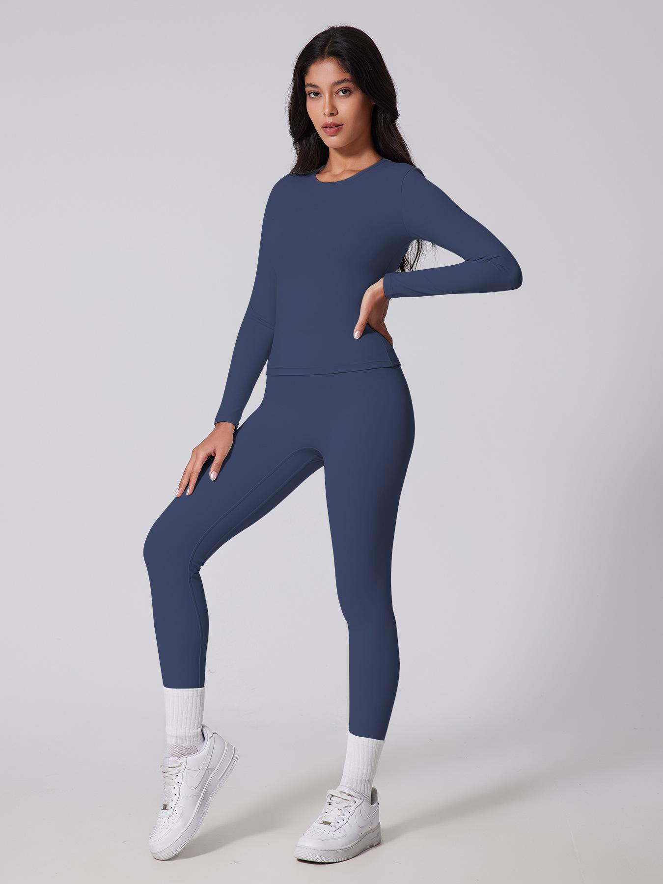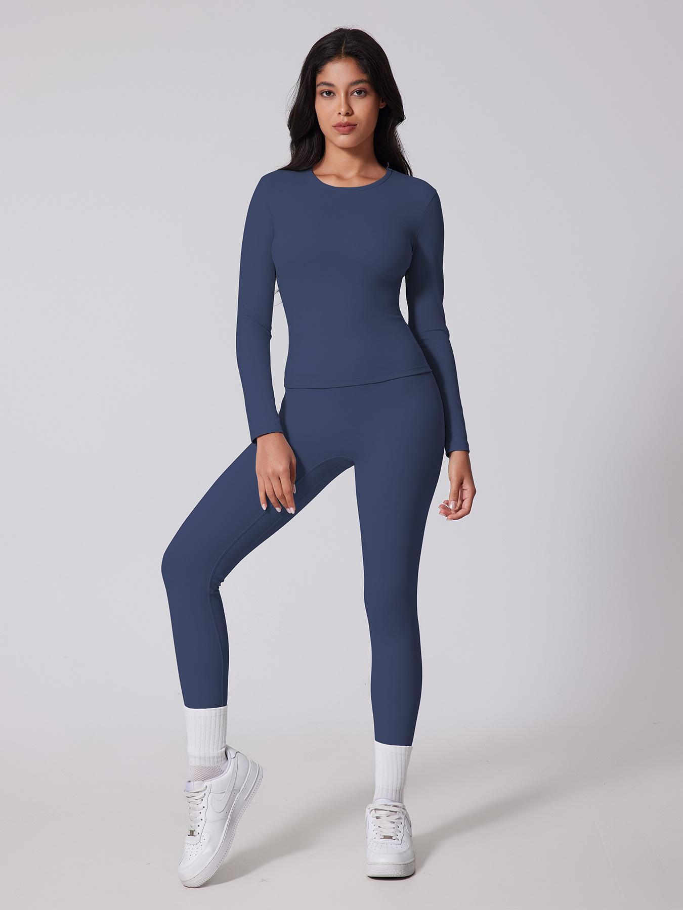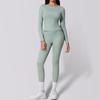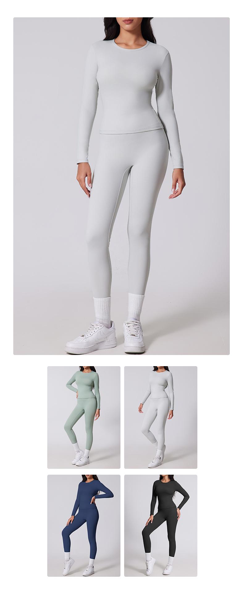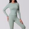 Traje de yoga deportivo para exteriores, gran oferta transfronteriza, cuello redondo, manga larga, pantalones ajustados, plástico, outlet de fábrica.