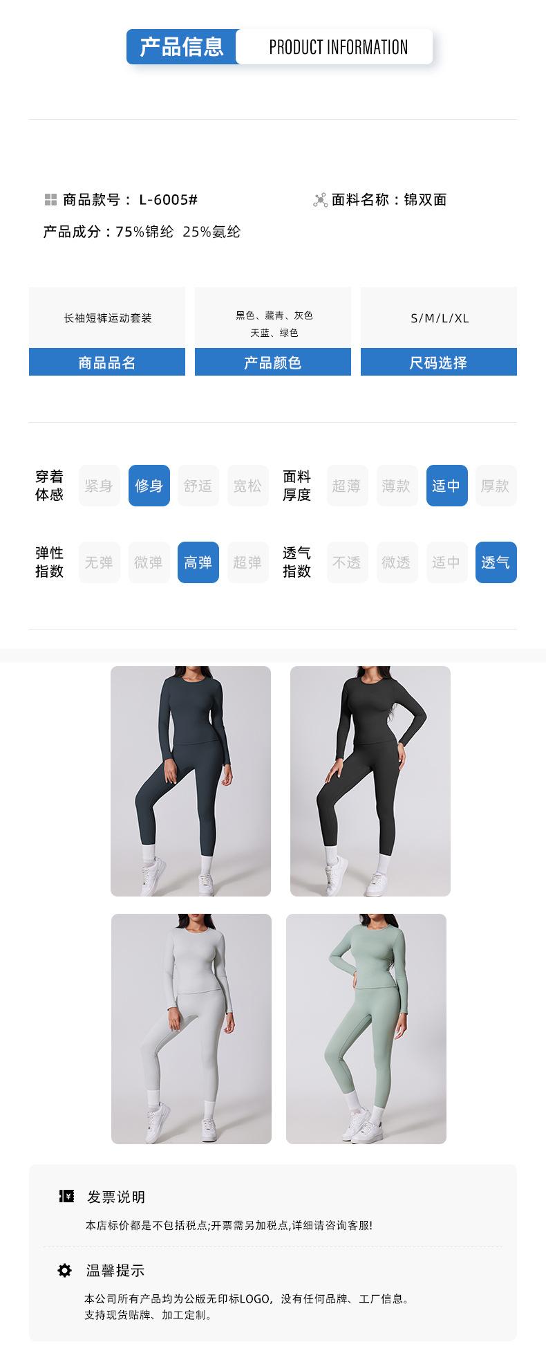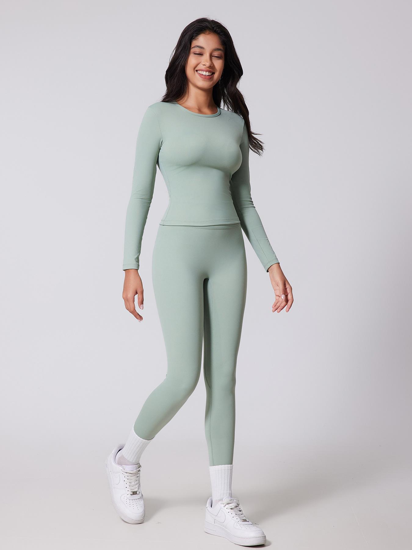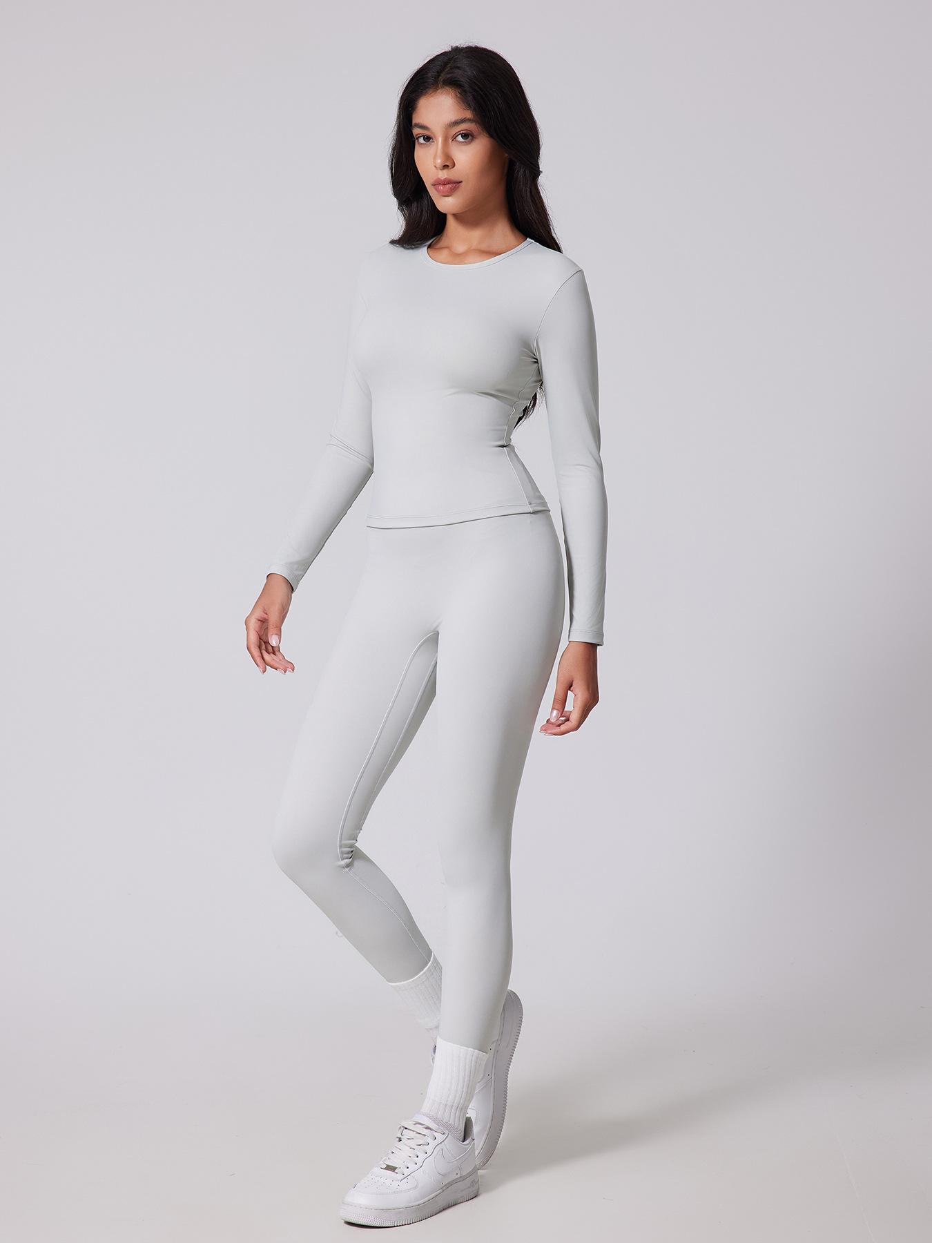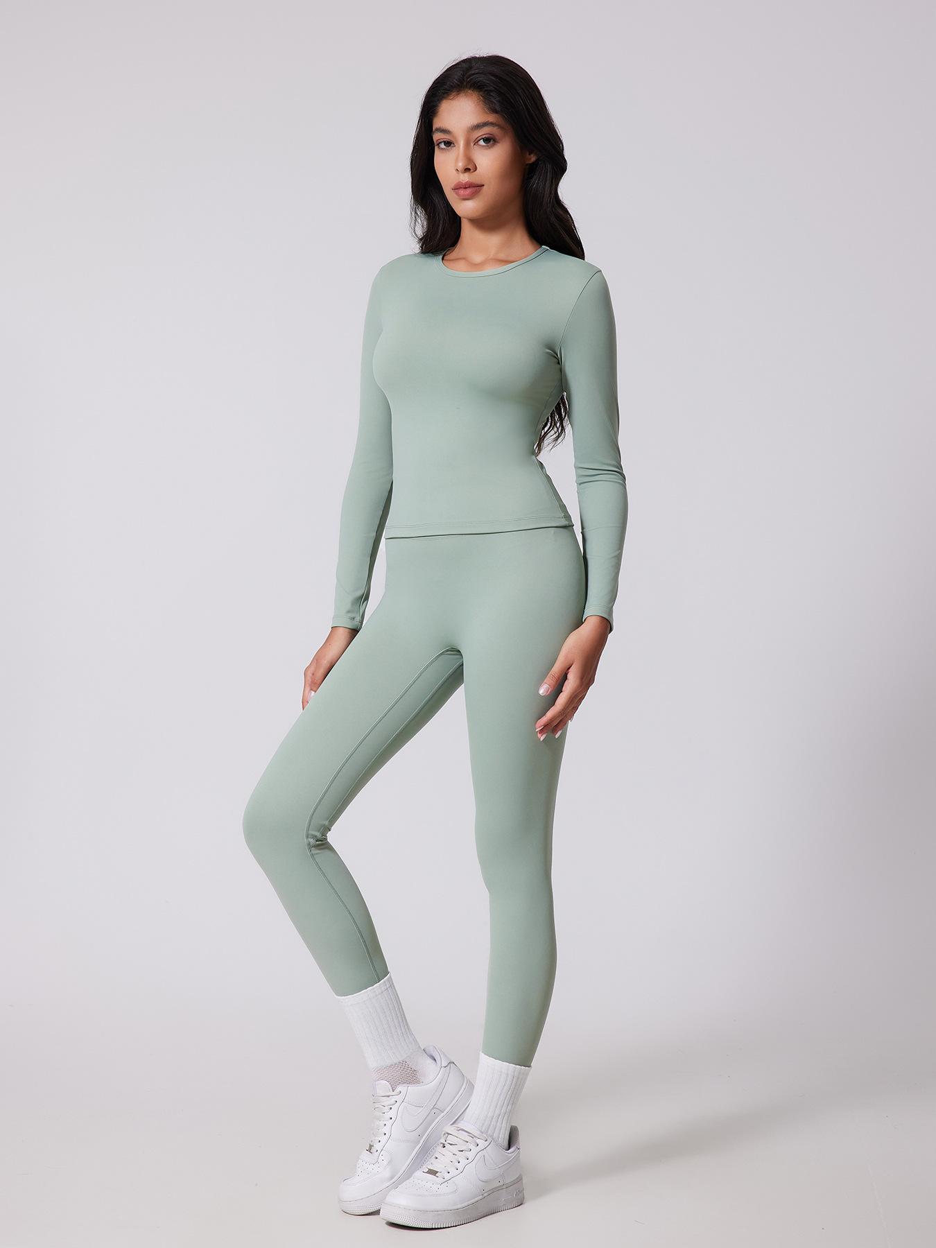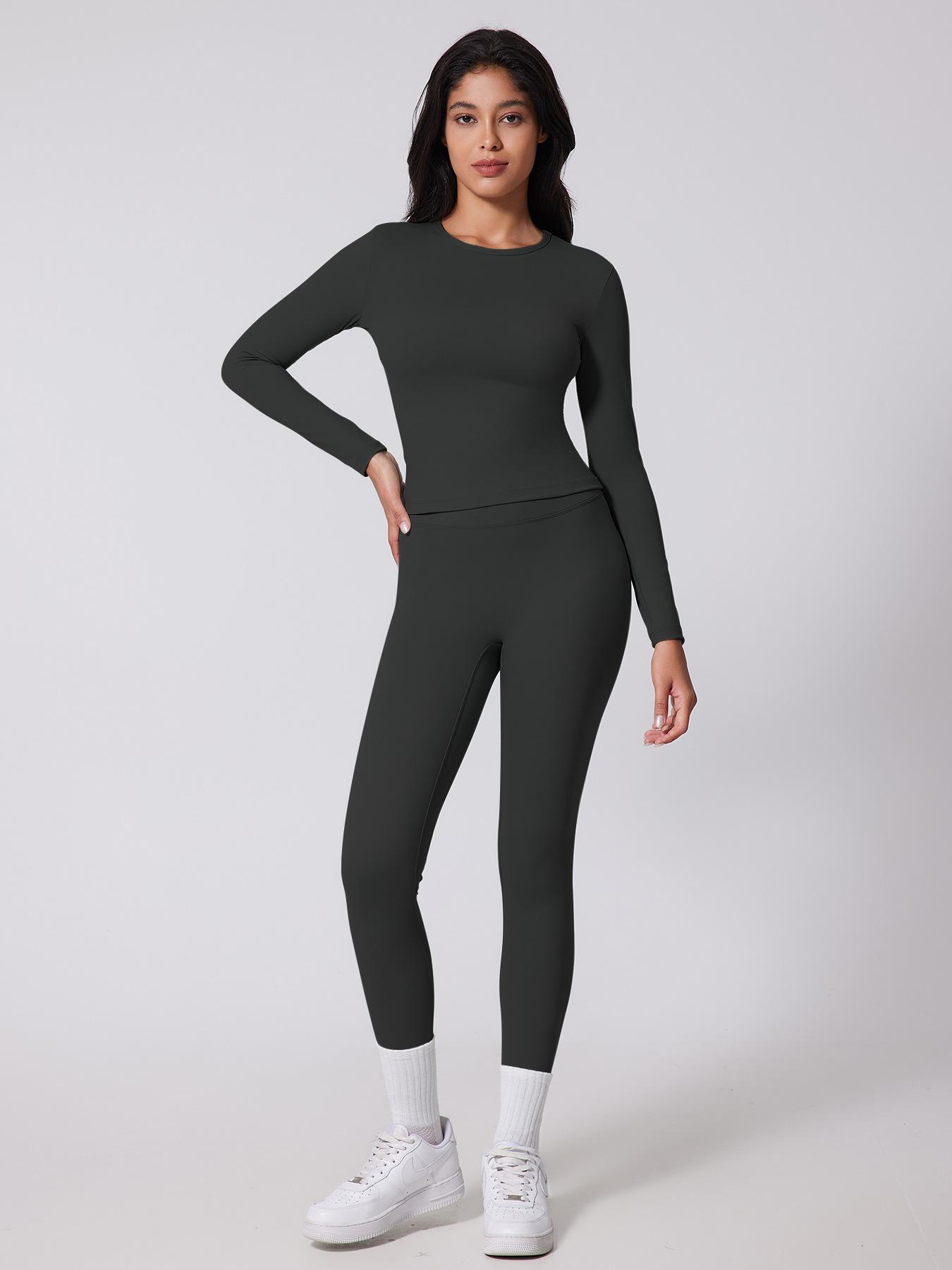Traje de yoga deportivo para exteriores, gran oferta transfronteriza, cuello redondo, manga larga, pantalones ajustados, plástico, outlet de fábrica.