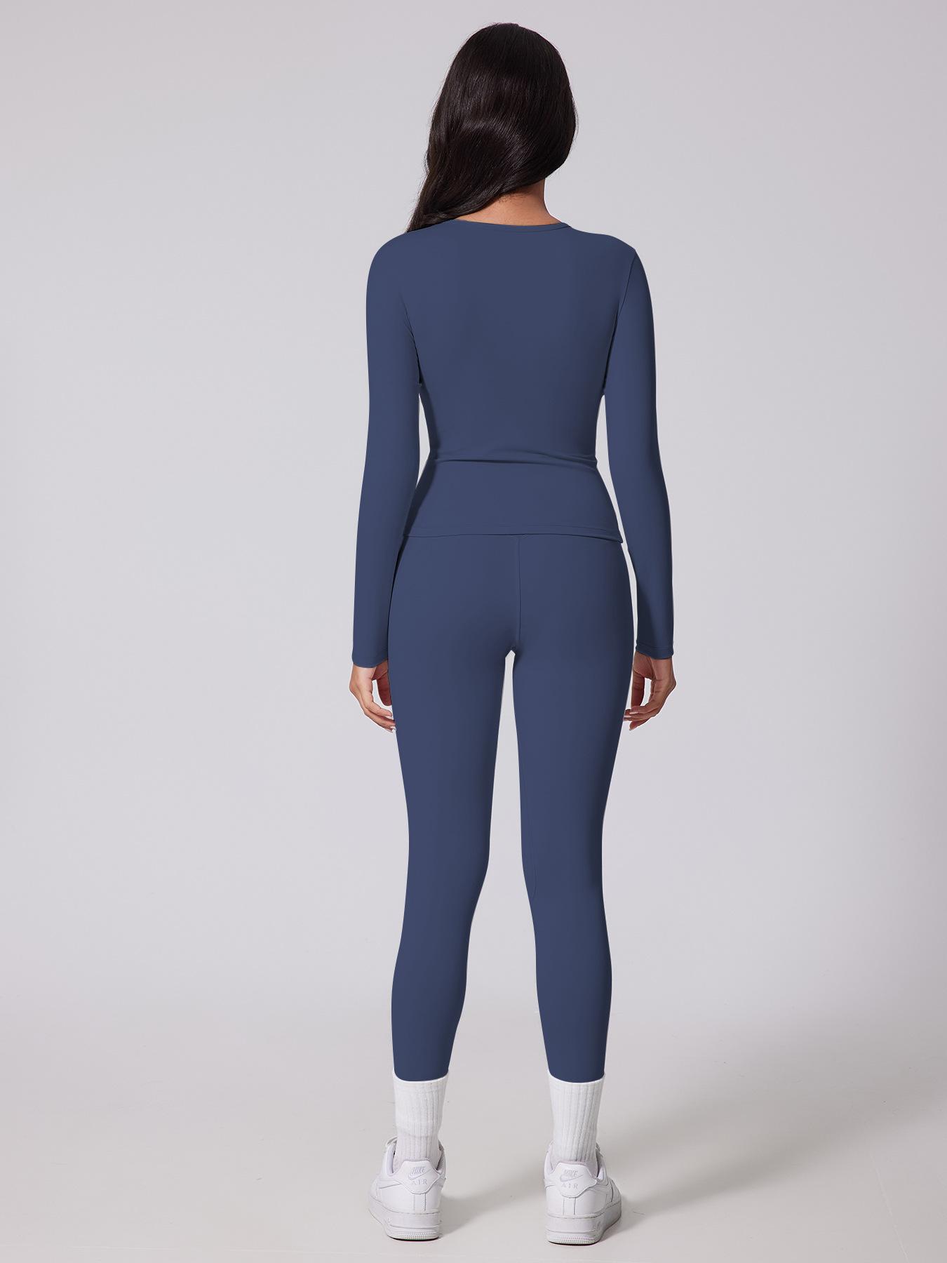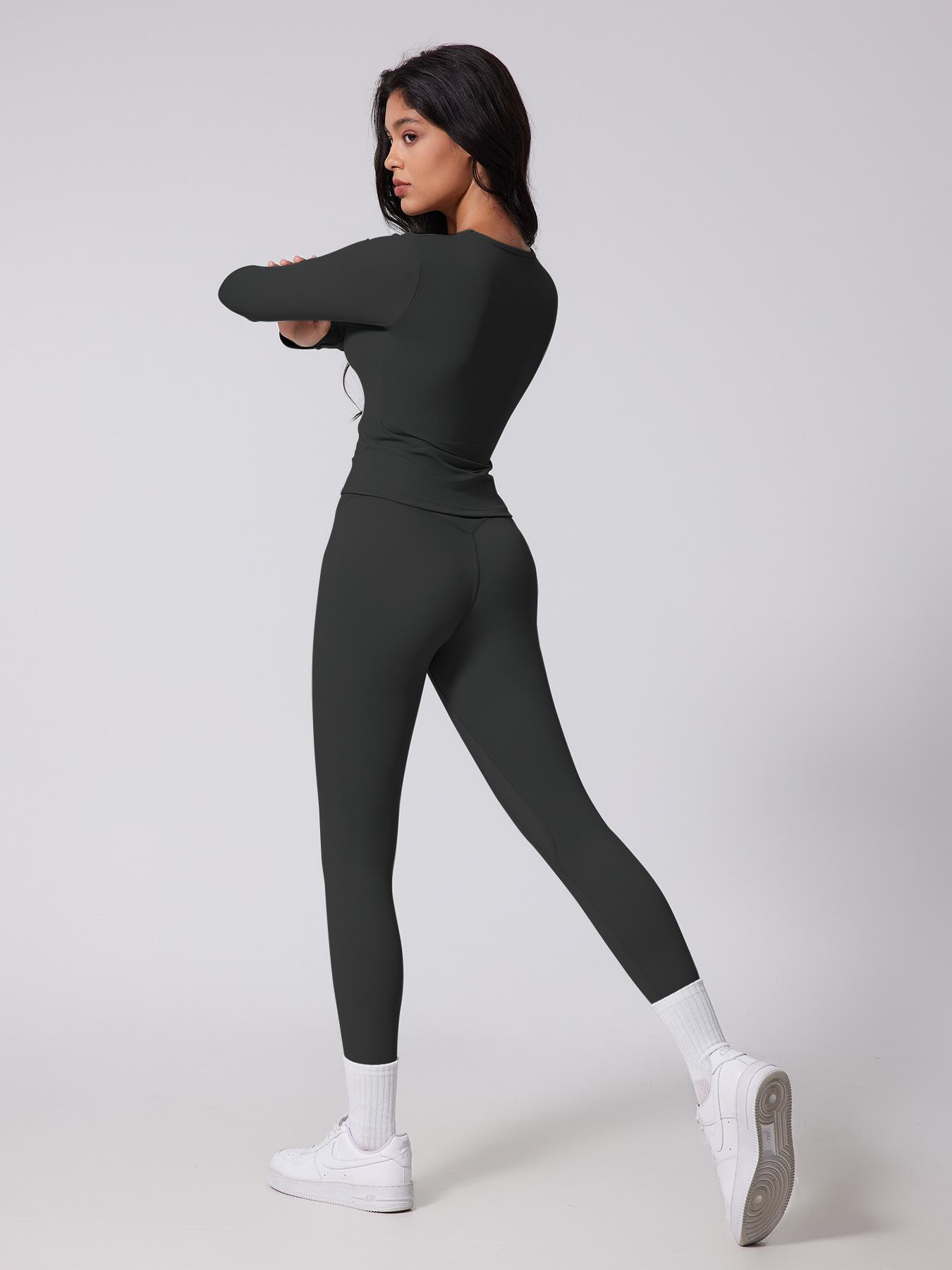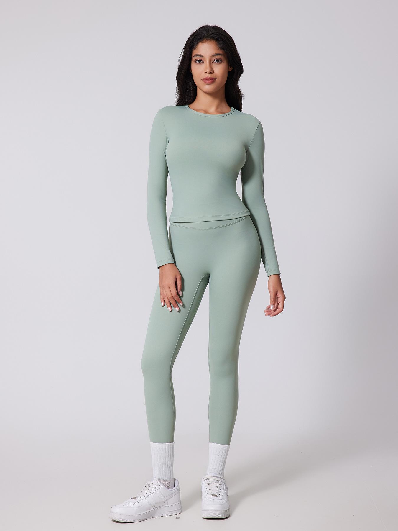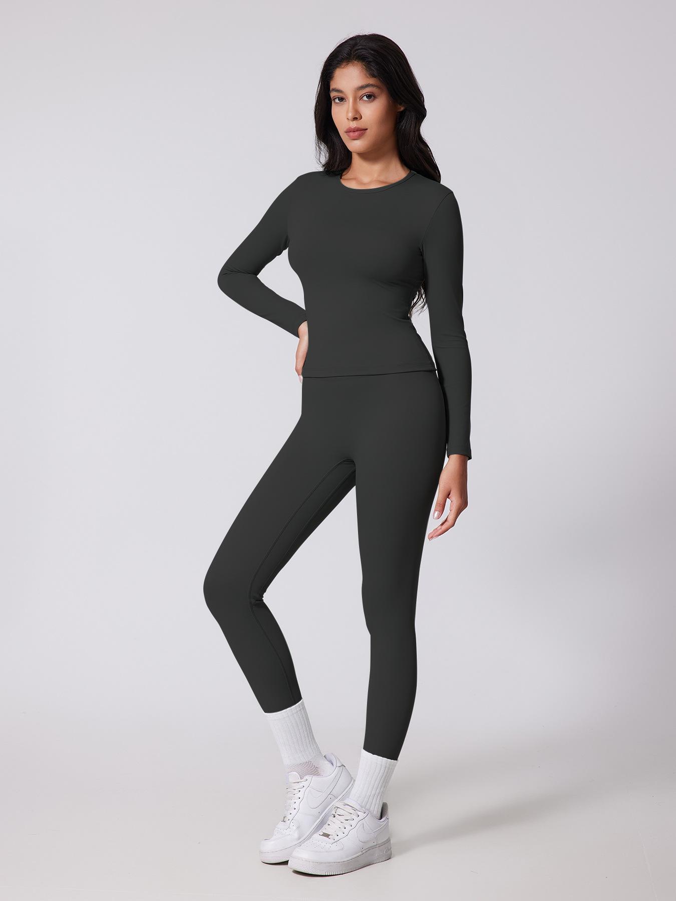 Traje de yoga deportivo para exteriores, gran oferta transfronteriza, cuello redondo, manga larga, pantalones ajustados, plástico, outlet de fábrica.