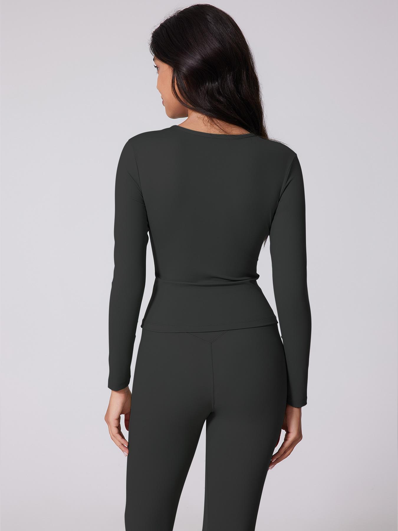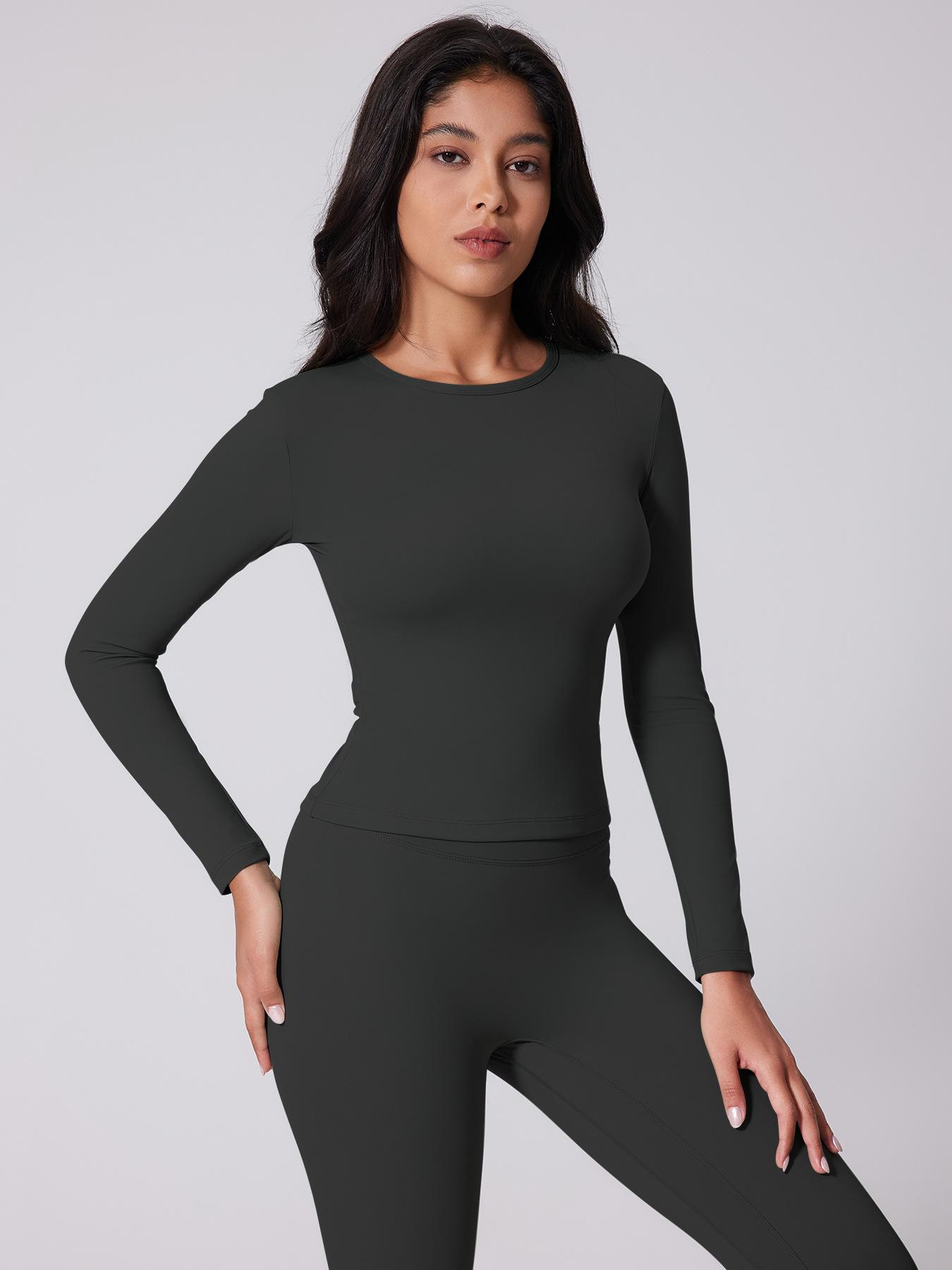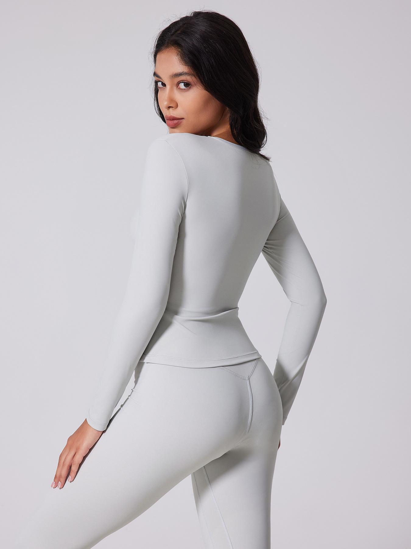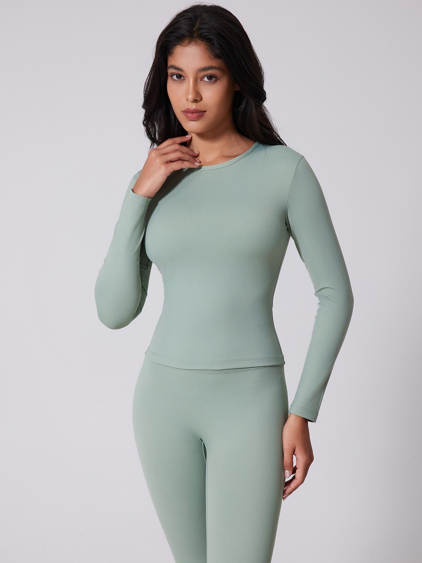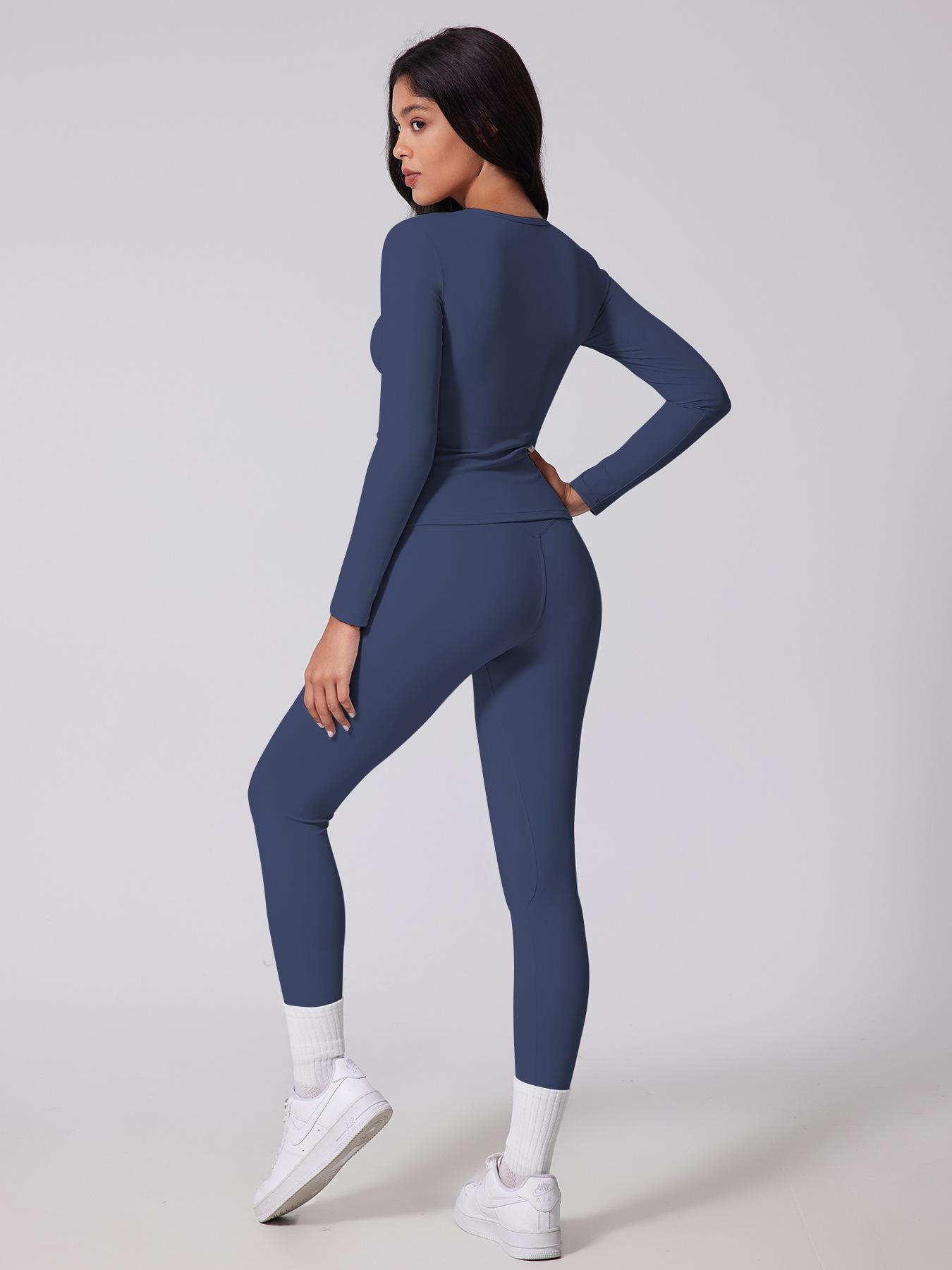 Traje de yoga deportivo para exteriores, gran oferta transfronteriza, cuello redondo, manga larga, pantalones ajustados, plástico, outlet de fábrica.