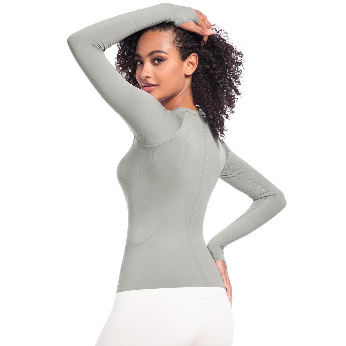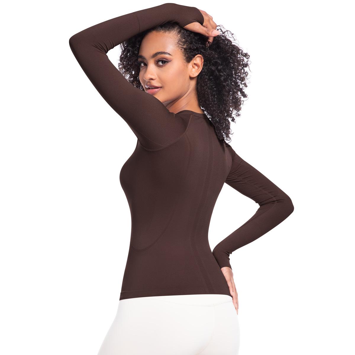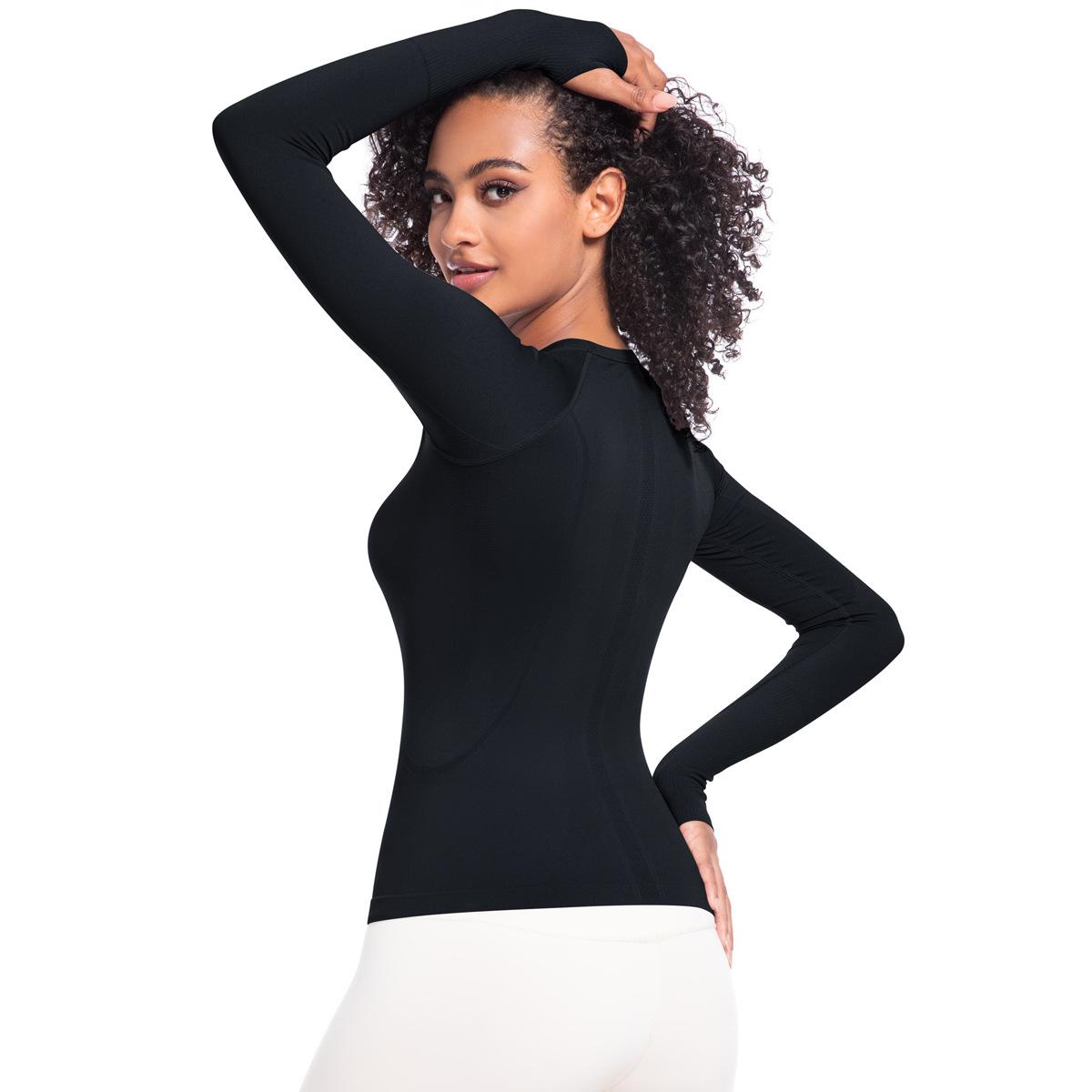 Nueva chaqueta de yoga larga de una pieza sin costuras, transpirable, de secado rápido, para mujer, deportiva, para correr, fitness, transfronteriza, europea y americana