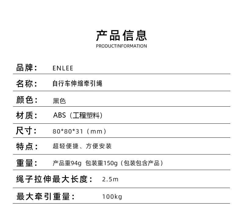 Enlee Bicicleta Exterior Ciclismo Cuerda de Tracción Bicicleta de Montaña Familia Cuerda de Remolque Dispositivo de Cordón Retráctil Automático
