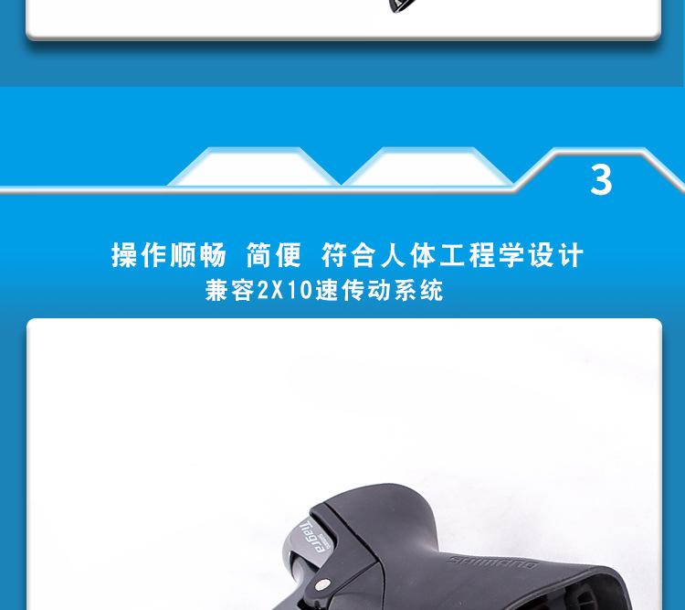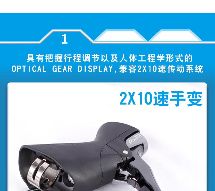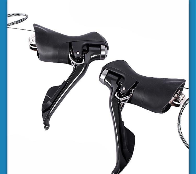 Con ajuste de alcance de la empuñadura y PANTALLA ÓPTICA DE MARCHAS de diseño ergonómico, es compatible con transmisiones de 2x10 velocidades. La maneta de doble control tiene frenos ocultos y cables de cambio integrados.
