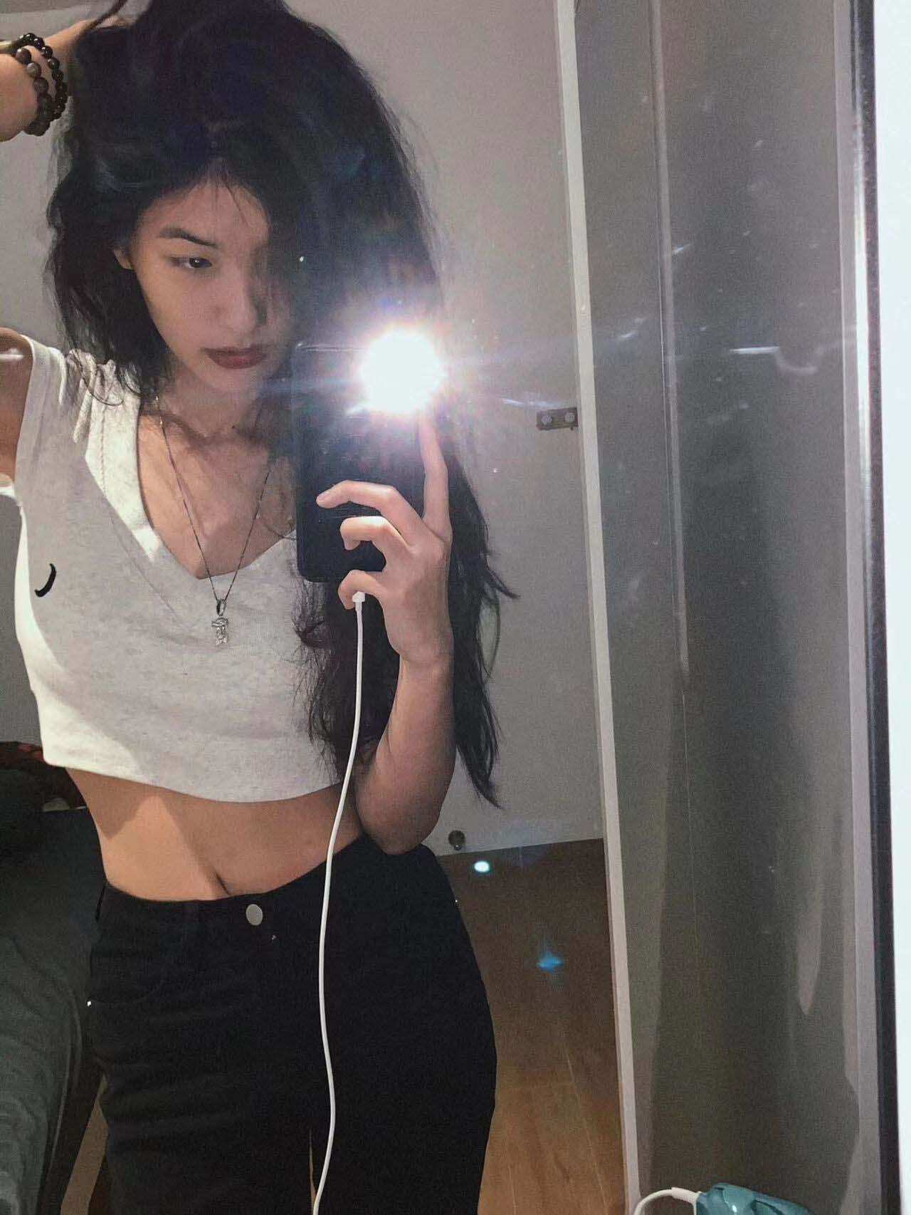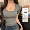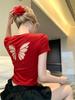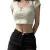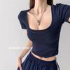 Playera de Verano Nueva 2024 para Mujer, Dulce y Picante, Cuello en V, Hombro Derecho Descubierto, Cintura Alta, Ombliguera, Sexy, Hottie, Look Adelgazante, Manga Corta