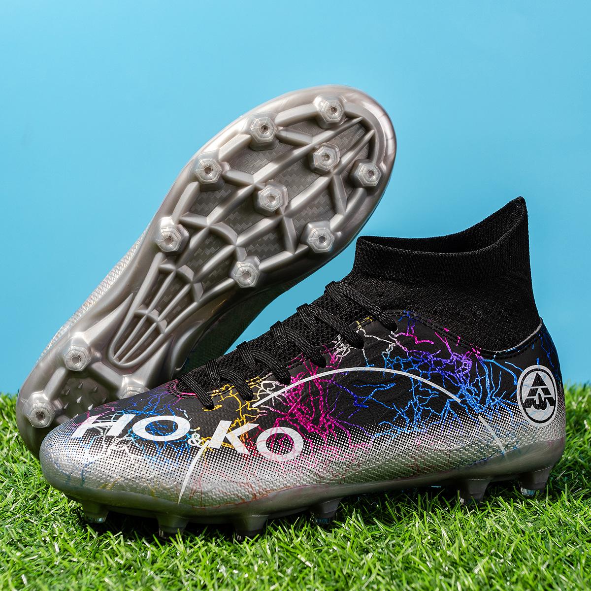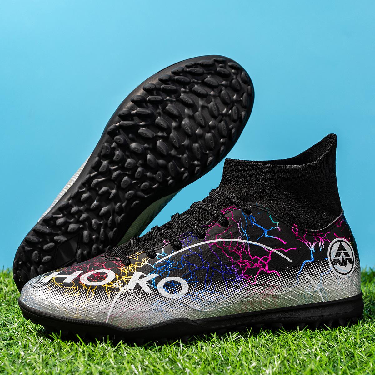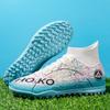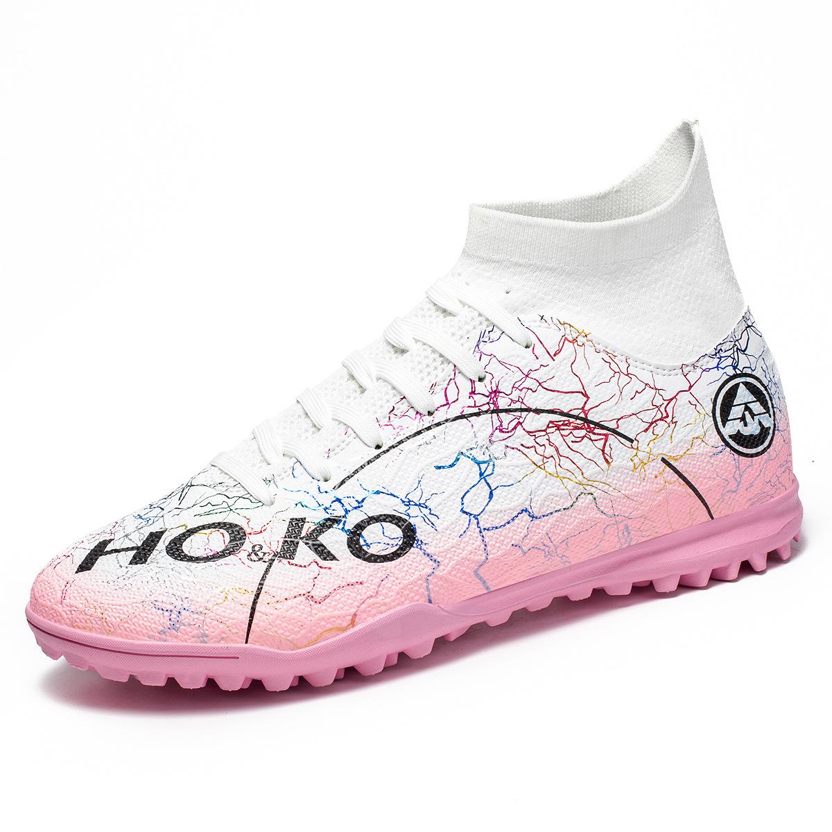Explosiones Transfronterizas Zapatos de Fútbol Tejidos a Mosca Sin Costuras de Caña Alta Assassin Polvo Zapatos de Clavos Competición Profesional tf Zapatos de Fútbol de Clavos Triturados
