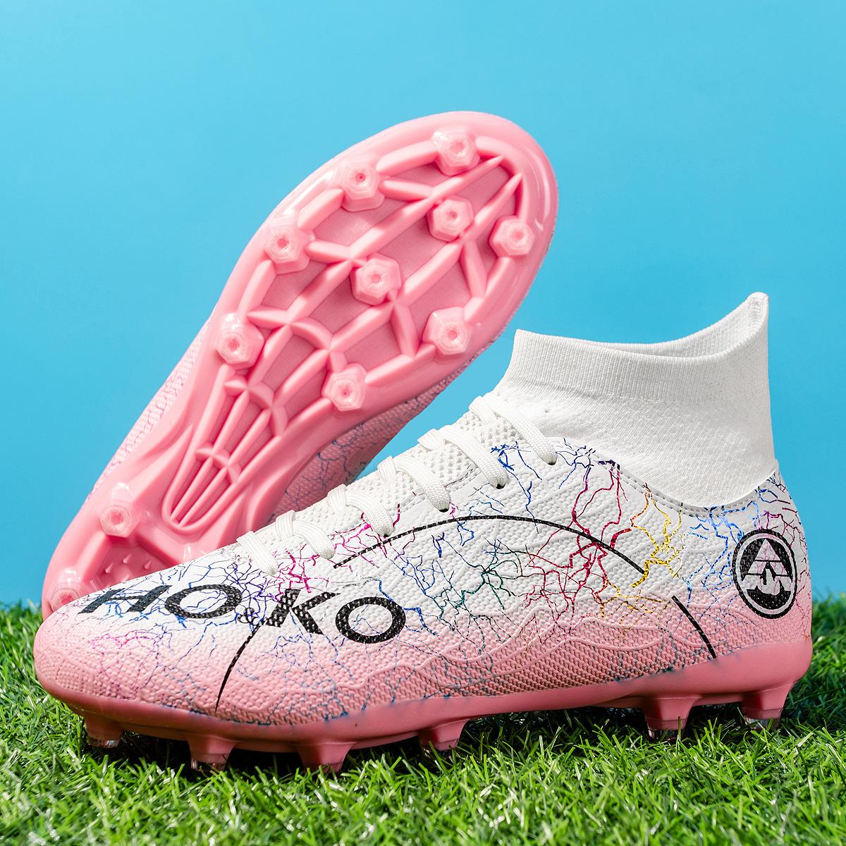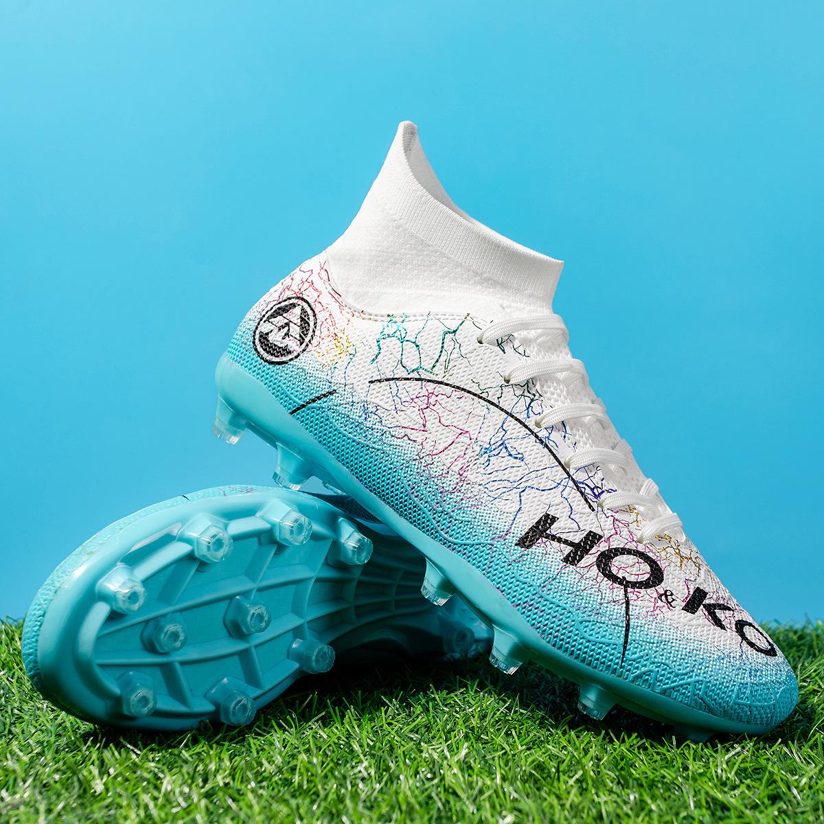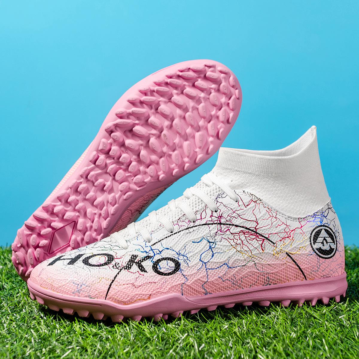 Explosiones Transfronterizas Zapatos de Fútbol Tejidos a Mosca Sin Costuras de Caña Alta Assassin Polvo Zapatos de Clavos Competición Profesional tf Zapatos de Fútbol de Clavos Triturados