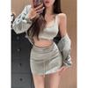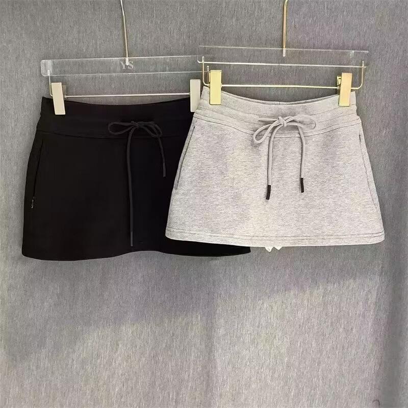 Falda gris con cordón ajustable para mujer, diseño de verano 2024, cintura elástica, aspecto adelgazante, falda deportiva.