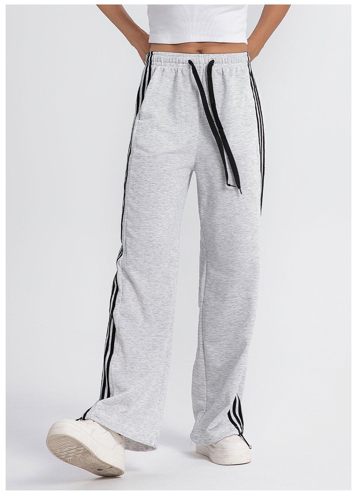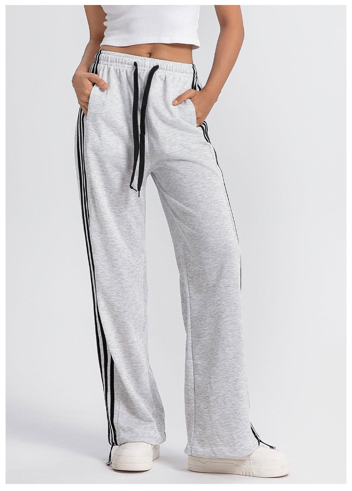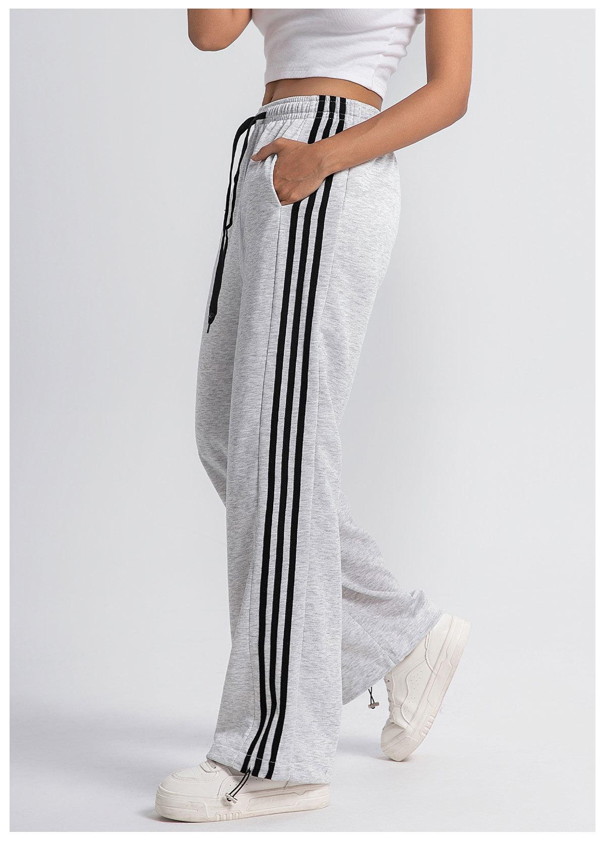 Pantalones deportivos casuales de pierna ancha y cintura alta estilo americano nuevo transfronterizo, pantalones de chándal de pierna ancha, pantalones deportivos rectos drapeados a rayas