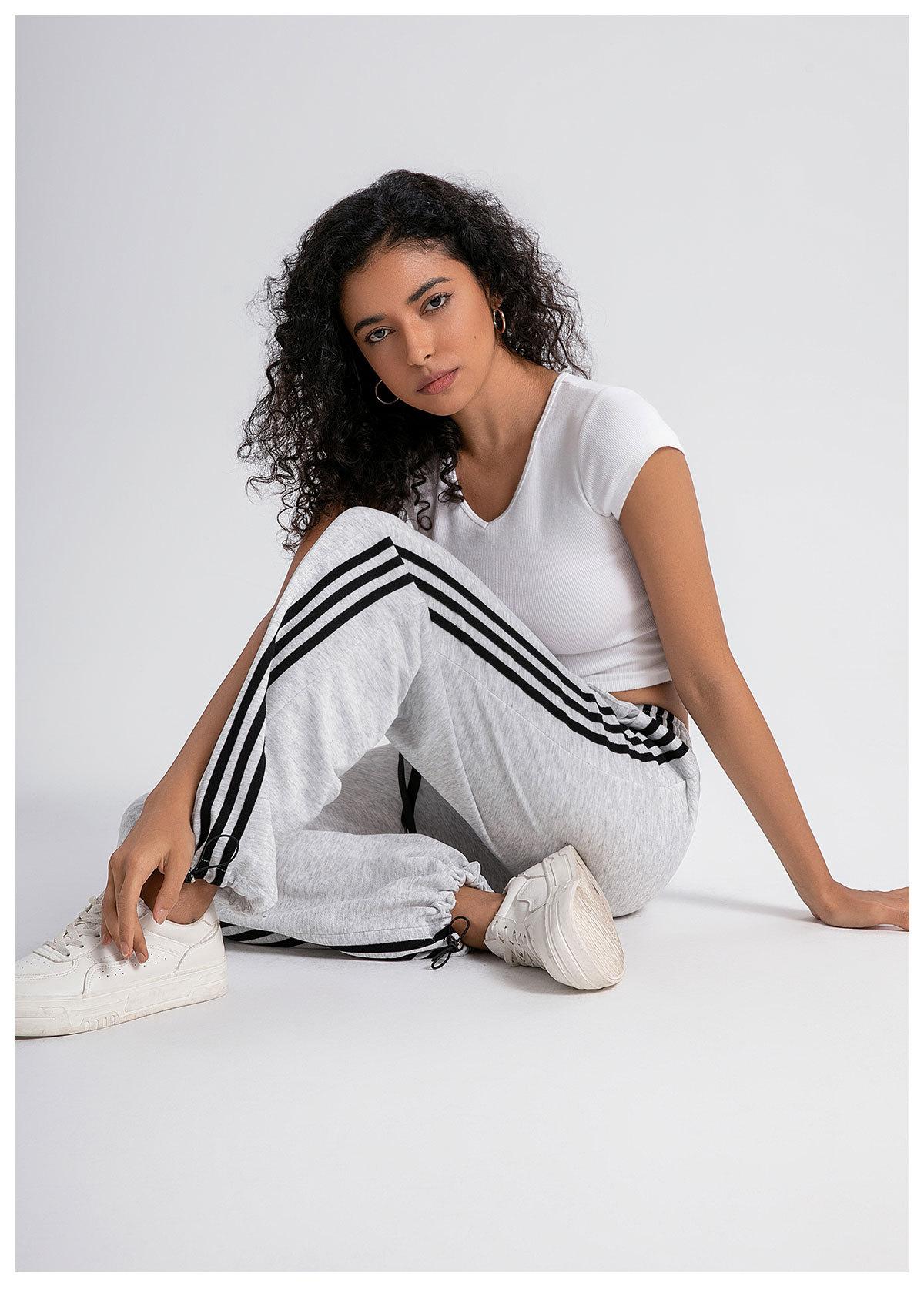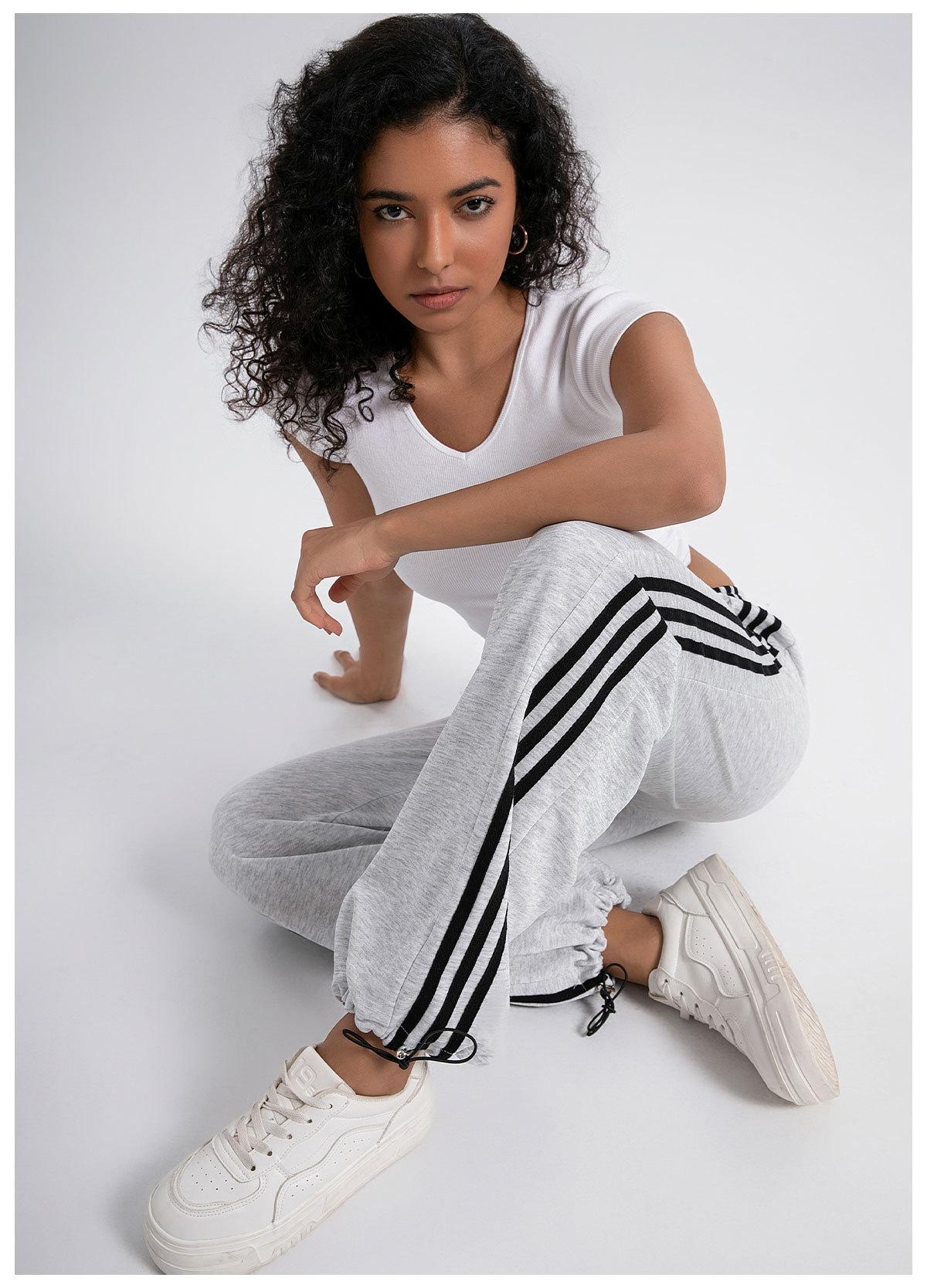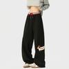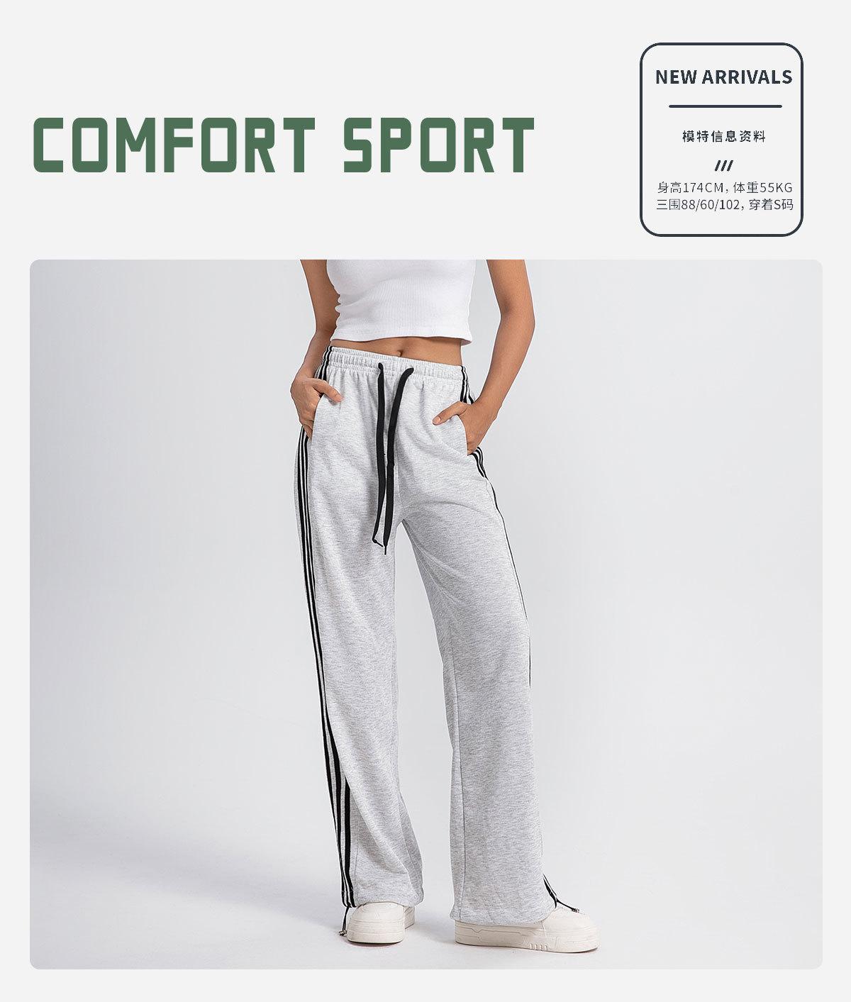 Pantalones deportivos casuales de pierna ancha y cintura alta estilo americano nuevo transfronterizo, pantalones de chándal de pierna ancha, pantalones deportivos rectos drapeados a rayas
