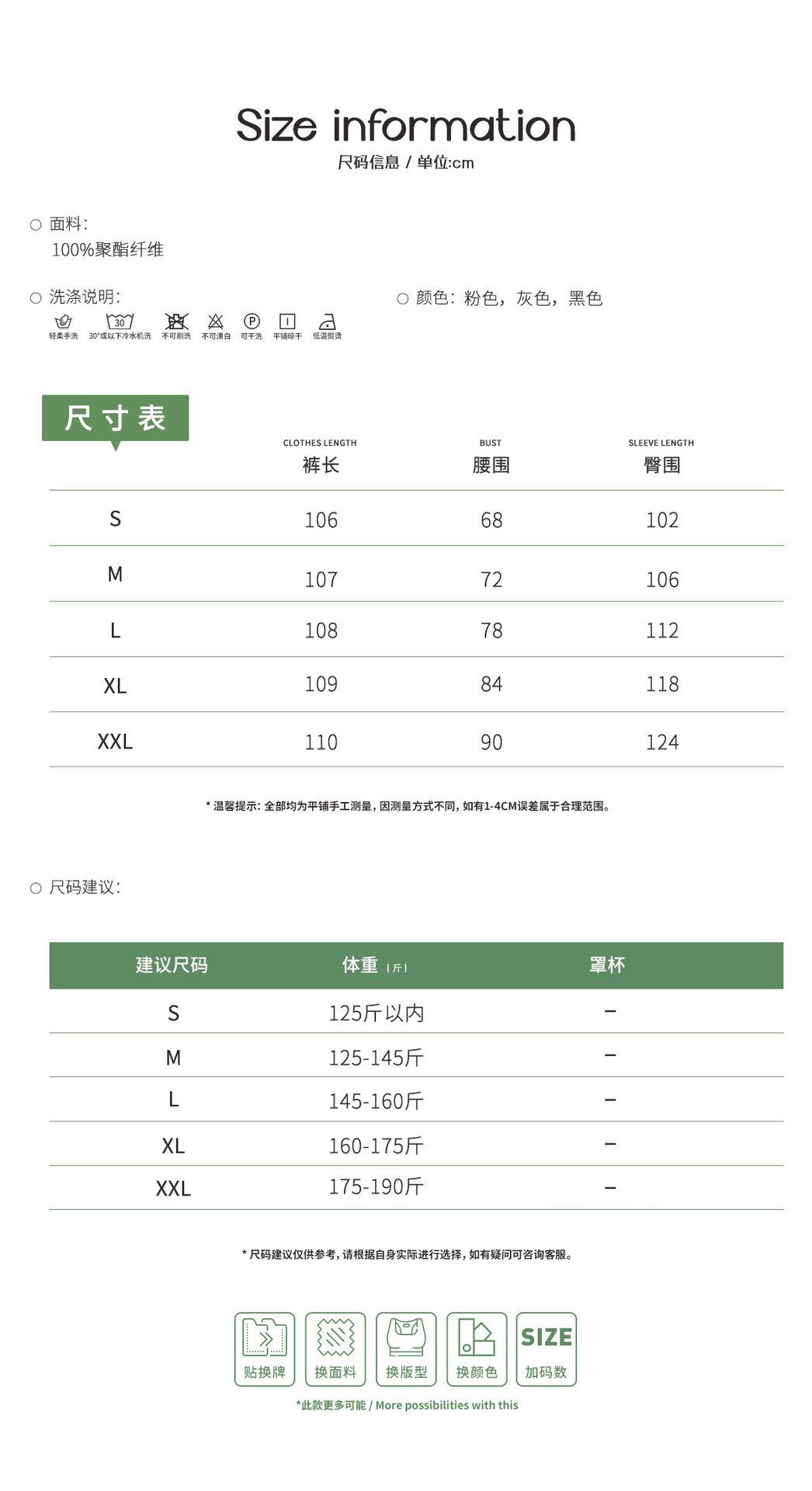 S, M, L, XL, XXL