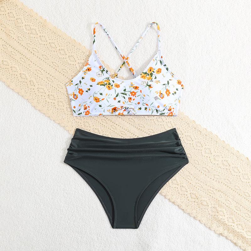 Traje de baño infantil floral europeo y americano transfronterizo de Amazon para niñas grandes y grandes, traje de baño bikini estampado lindo y fresco