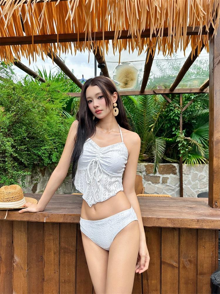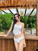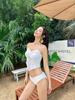 Traje de baño corto blanco con cordón ajustable, estilo coreano, sexy, sin espalda, push-up, con abertura en el pecho, para mujer