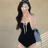 Nuevo Estilo Americano Retro Dulce Encaje Bordado Hombro Descubierto Pecho Pequeño Cuadros Abertura Traje de Baño Bikini Vacacional para Mujer
