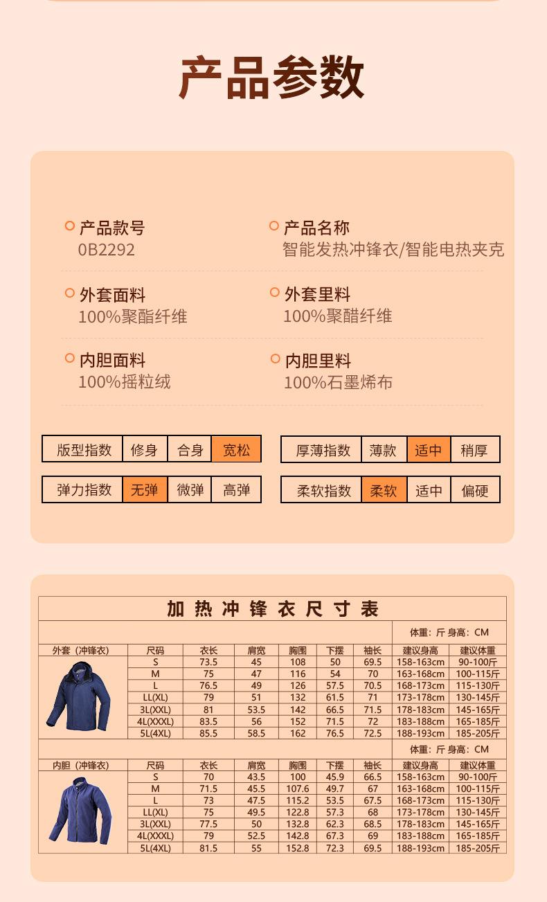 Navy blue dual-control 5-zone heated jacket [single clothes, no power bank, bring your own power bank], Navy b...