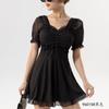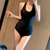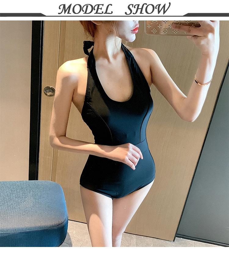 Traje de baño conservador de una pieza para mujer, estilo adelgazante, de color negro, para vacaciones, sexy, con espalda abierta, fruncido, para playa y aguas termales.