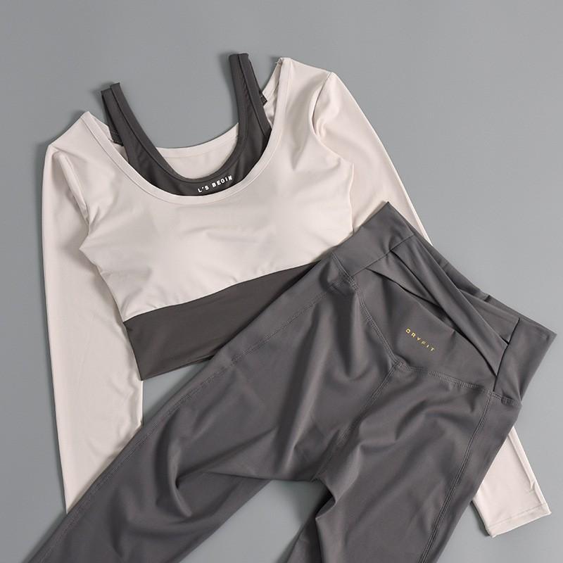 Ropa deportiva ajustada para mujer, conjunto de yoga de dos piezas, top deportivo de manga larga, secado rápido, ropa deportiva ajustada para otoño