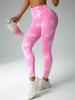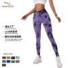 Pantalones de yoga tie-dye europeos y americanos para mujer, ajustados, de cintura alta, de secado rápido, con base deportiva color melocotón, para levantar la cadera, para correr y hacer ejercicio.
