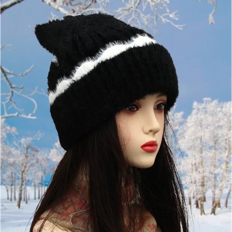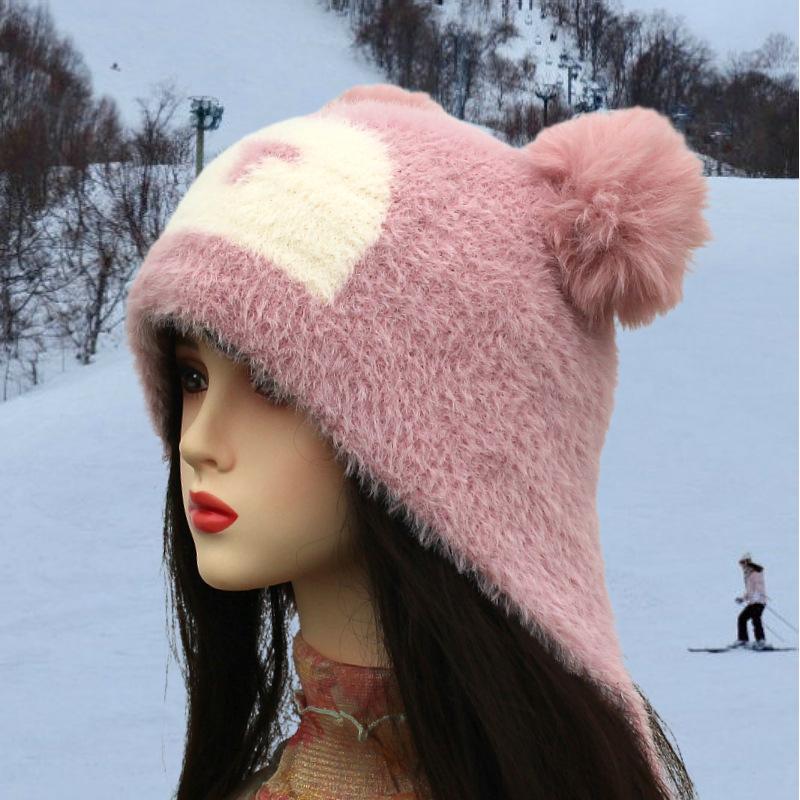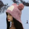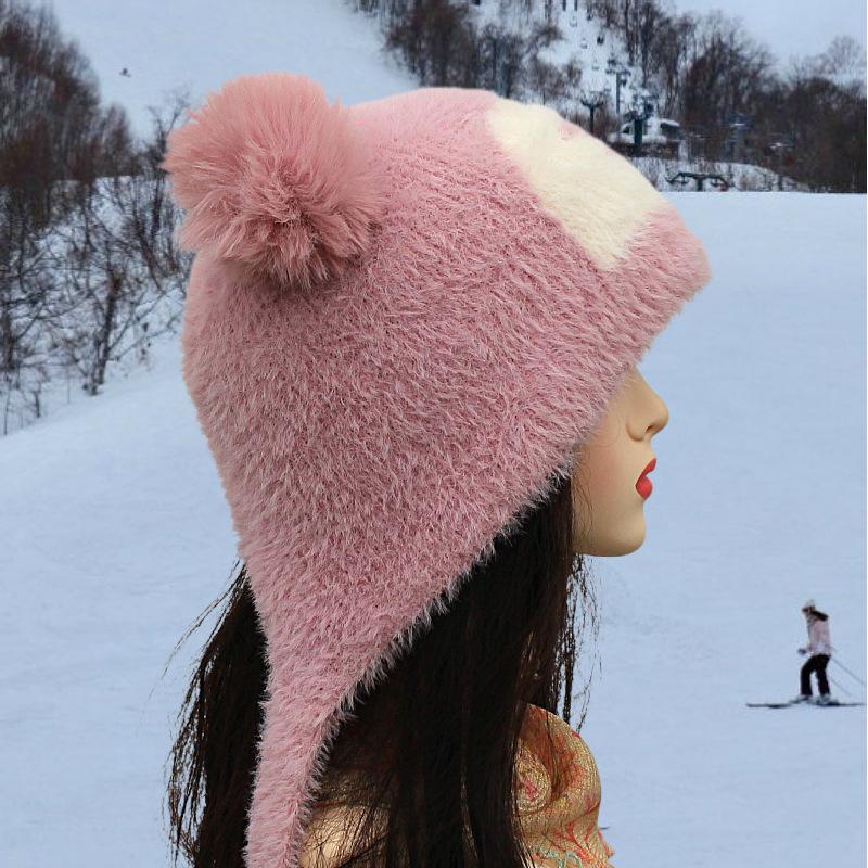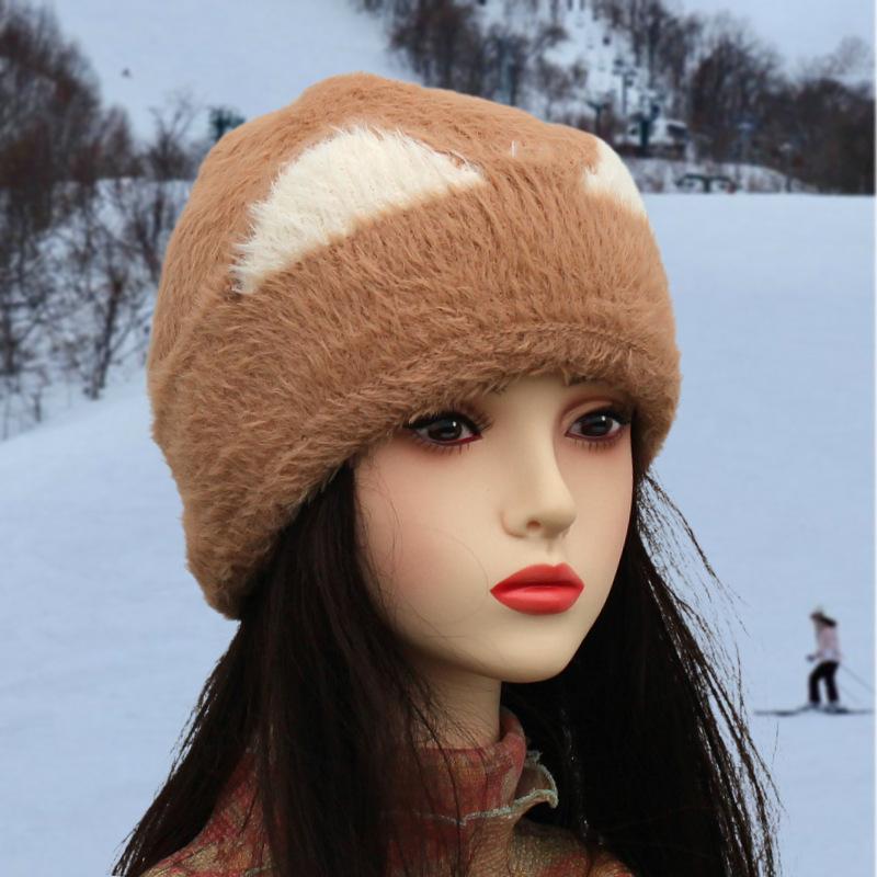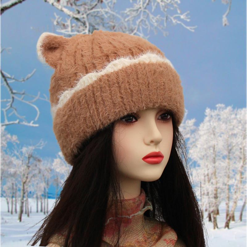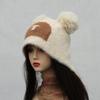Gorro de lana de oso para mujer, gorro de invierno, pequeño y cálido, con protección para las orejas y cabeza grande, 2023