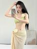 Bikini de mujer con falda dividida de hada, estilo fragante pequeño, con flores tridimensionales, de alta gama, con sentido puro y deseo.