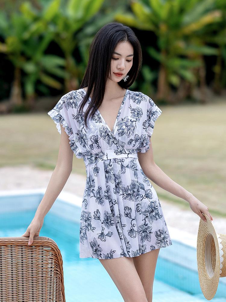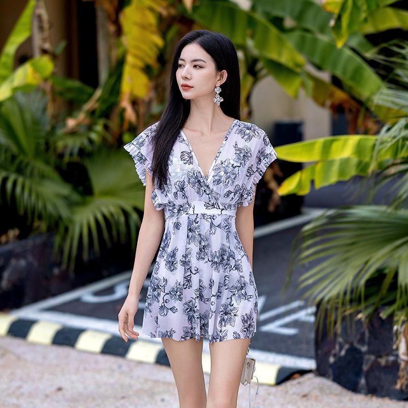 Traje de baño de verano para mujer, de una pieza, con falda, conservador, de talla grande, que cubre el vientre, adelgazante, para vacaciones en la playa, traje de baño de aguas termales, nuevo estilo