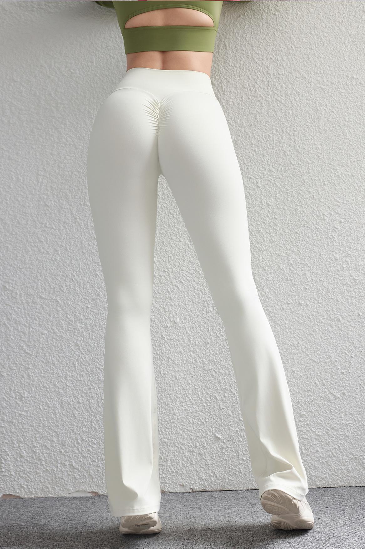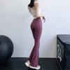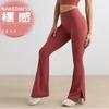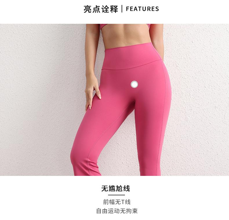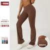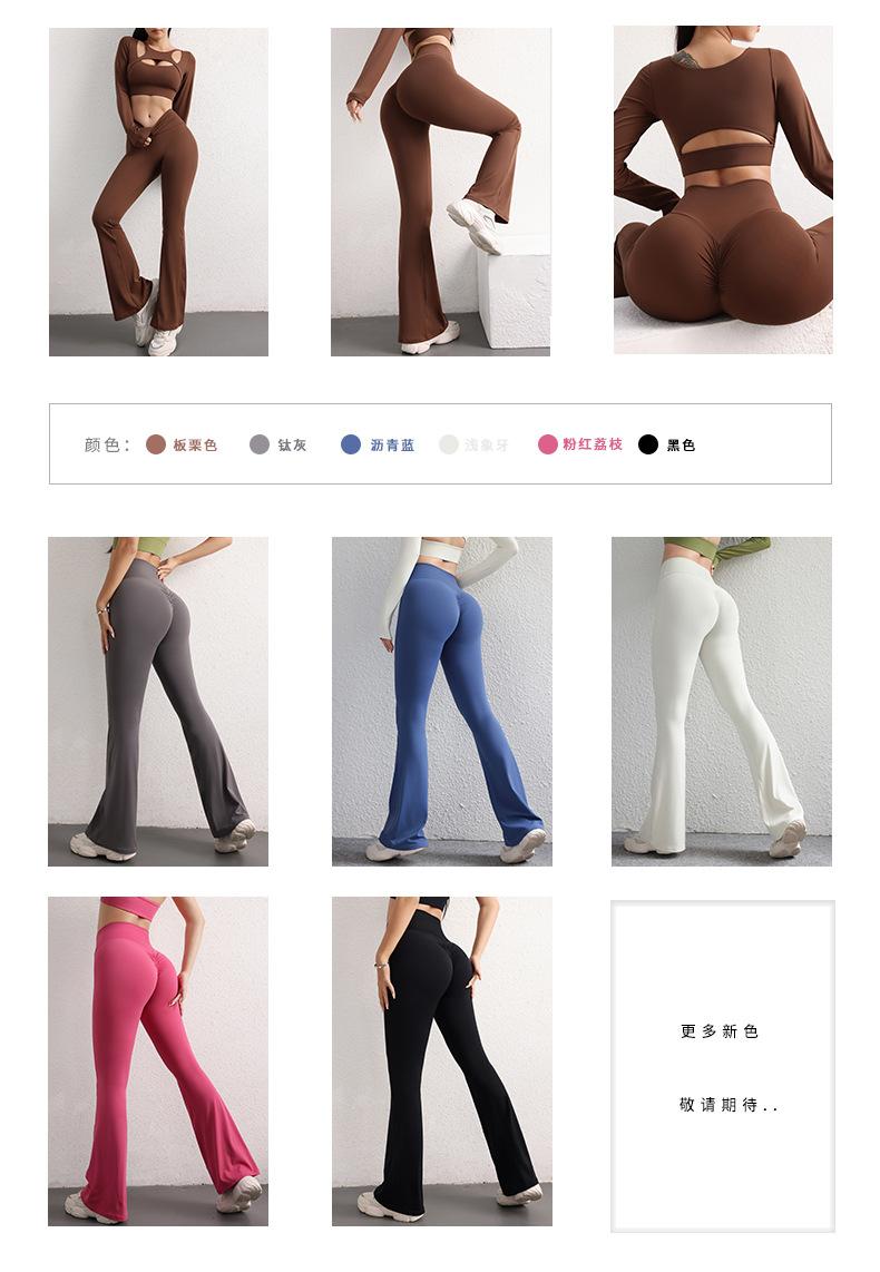 Pantalones de yoga de secado rápido, estilo micropantalones de cintura alta, estilo europeo y americano, con diseño acampanado, para mujer, deportivos, de pierna ancha y estilo fitness.