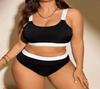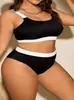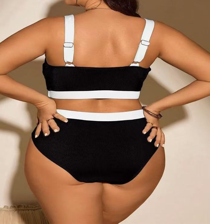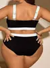 Traje de baño de dos piezas de bikini nuevo de comercio exterior para mujer, traje de baño de cintura alta con costuras de color sólido y hombros descubiertos para Amazon