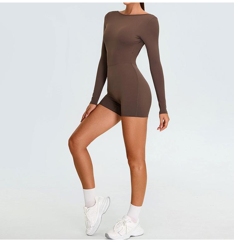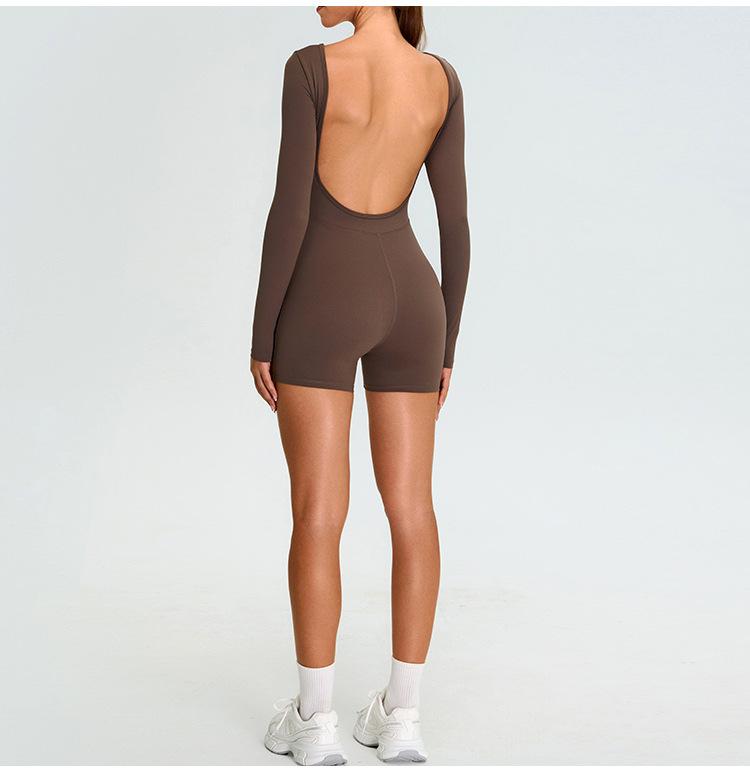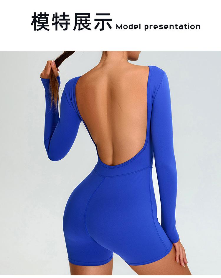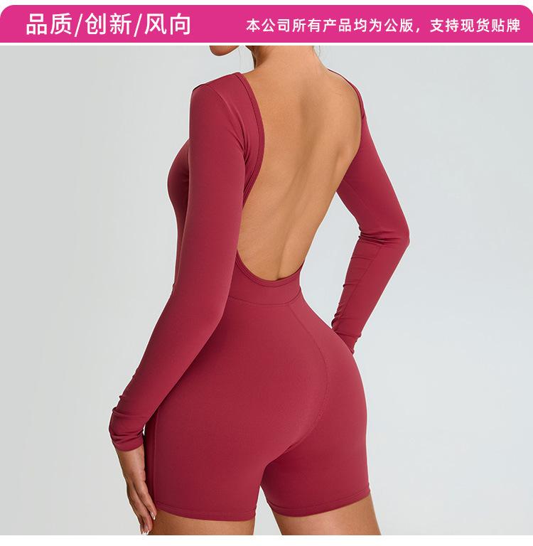 Nuevo Mono Deportivo de Exterior Transfronterizo, Espalda Femenina y Hermosa, Mono de Manga Larga, Traje de Yoga Ajustado de Secado Rápido para Danza