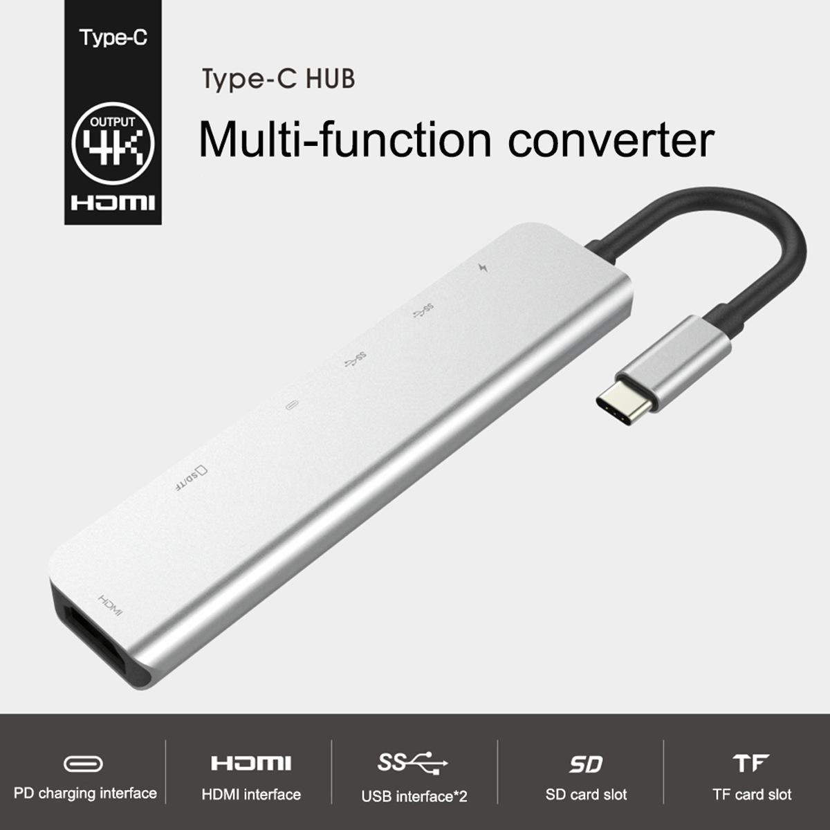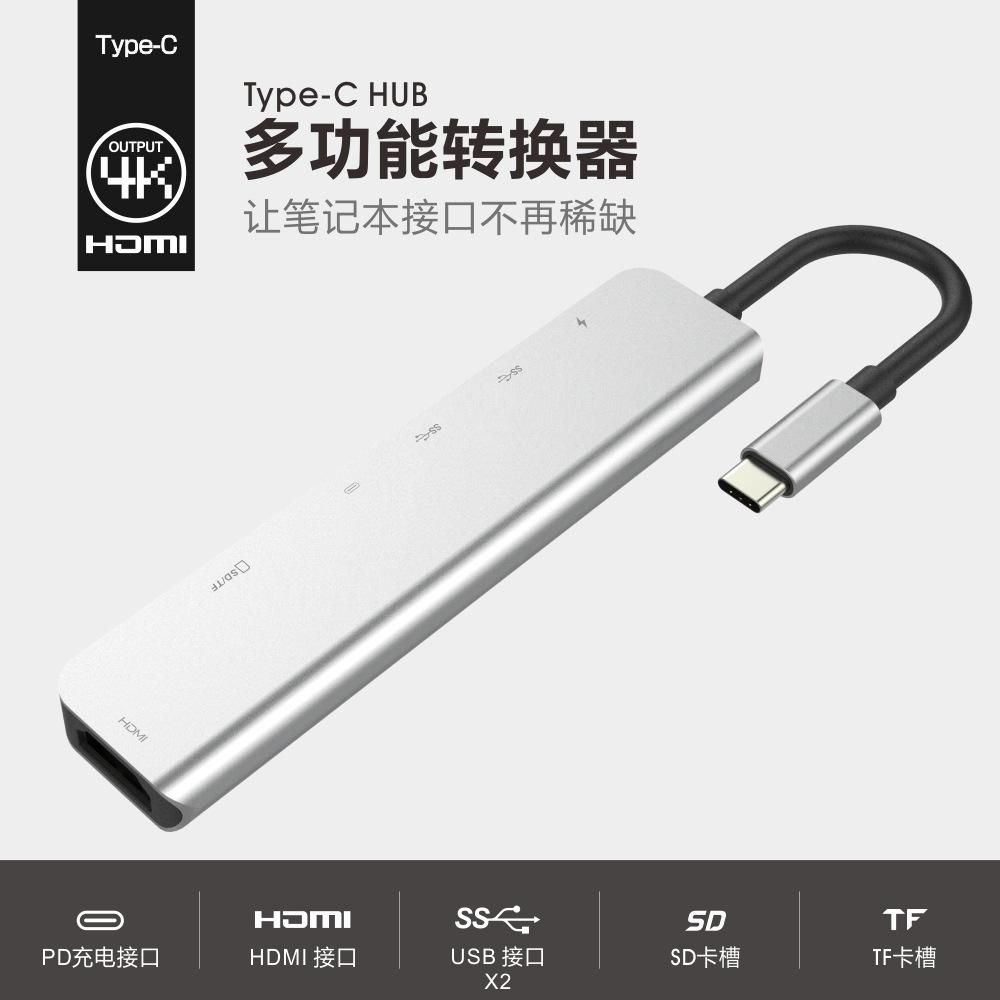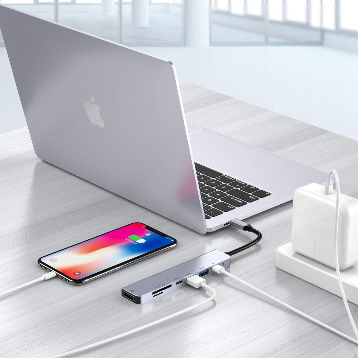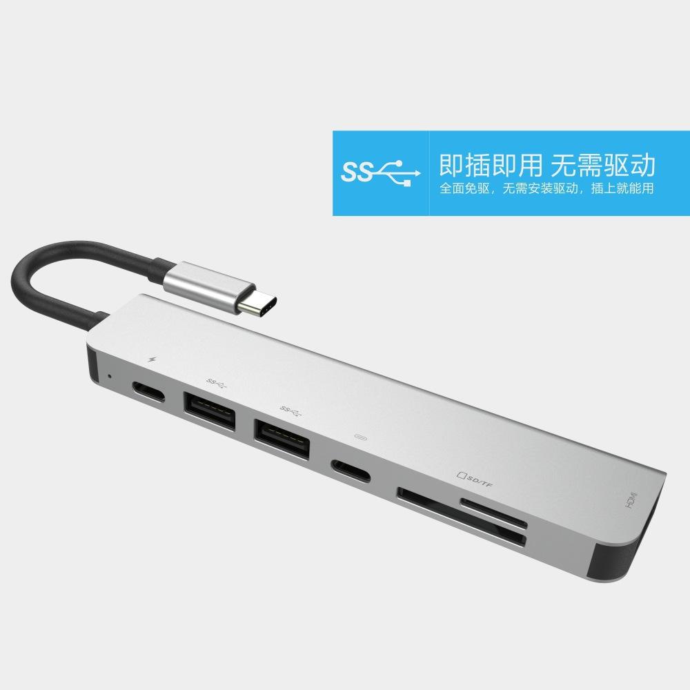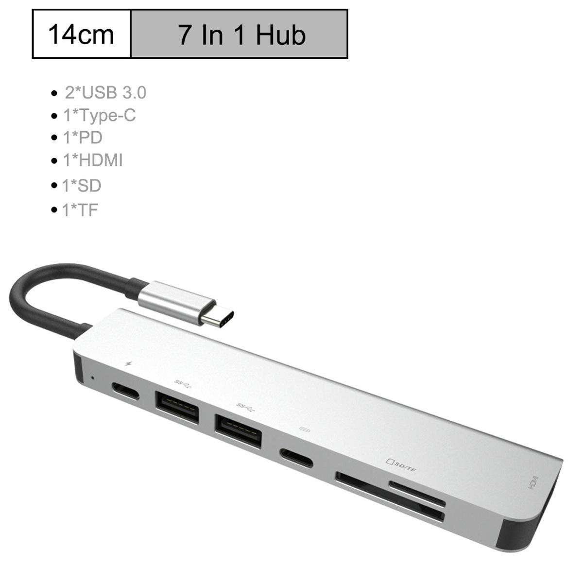 Estación de acoplamiento tipo C siete en uno, lector de tarjetas, concentrador de tarjetas a HDMI 4K, tres puertos USB 3.0 PD, carga