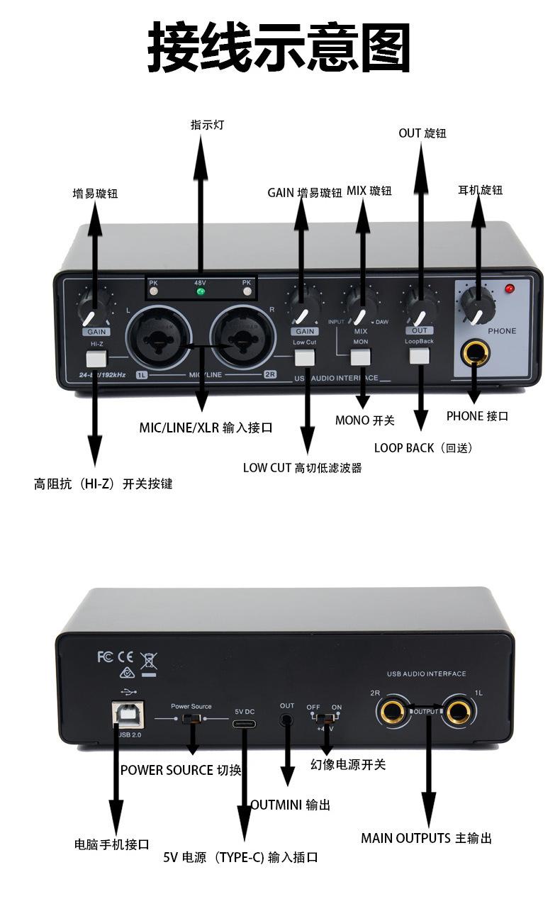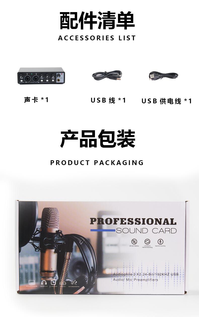 Sound card * 1,USB cable * 1,USB power supply line * 1