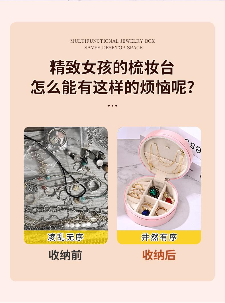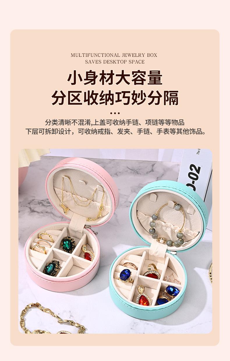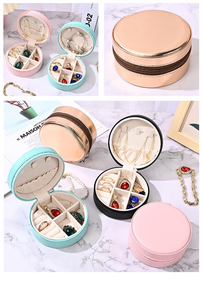 Mini jewelry box convenient travel high-end storage box pu leather jewelry box wholesale round small storage box