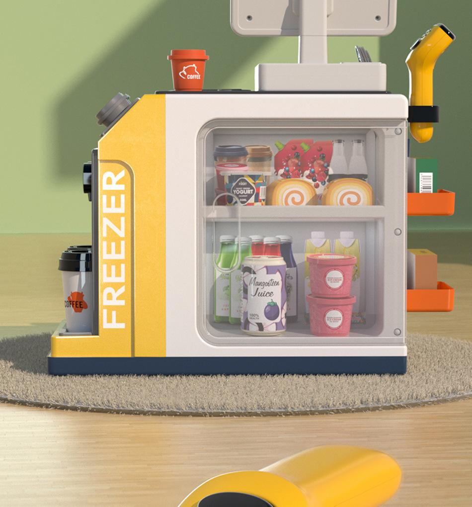 Nuevo juego transfronterizo para niños, mini supermercado, mesa de compras, simulación, máquina de café, mesa expendedora, juego de juguetes