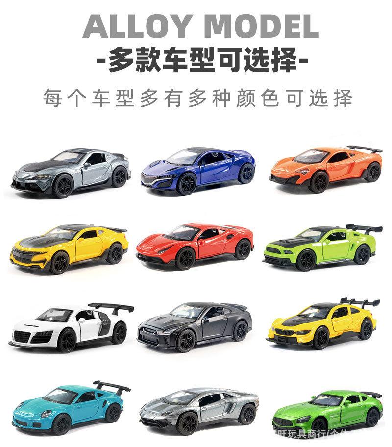 Modelo de Coche de Aleación 1/36 con Sonido y Luz, Juguete de Cuerda para Niños, Coche Deportivo, Adornos para Pastel, Minicar en Bolsa