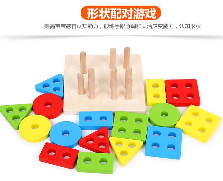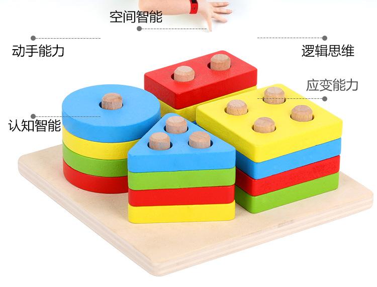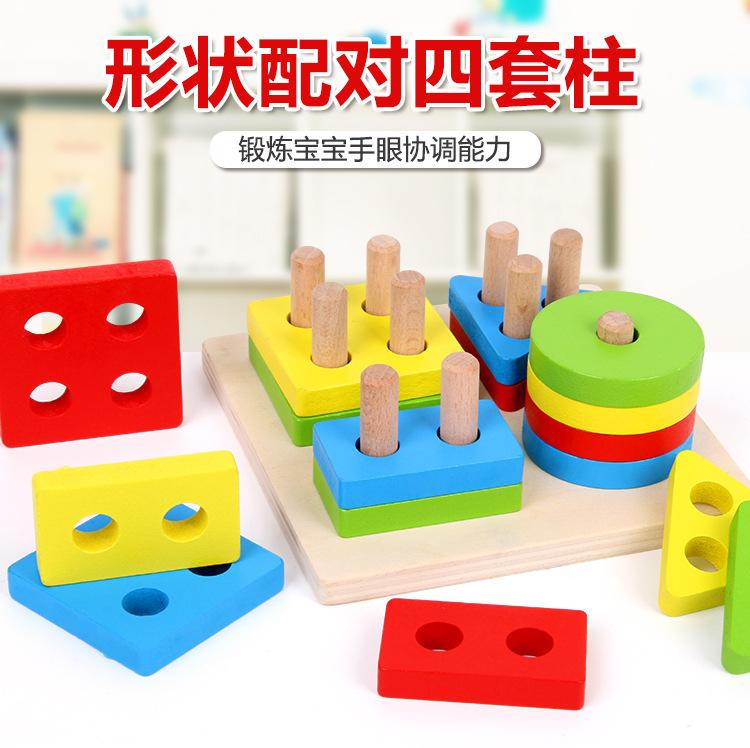 Juguete educativo de cuatro pilares de madera para niños, juego de sabiduría para educación temprana, bloques de construcción con formas geométricas y correspondencia cognitiva.
