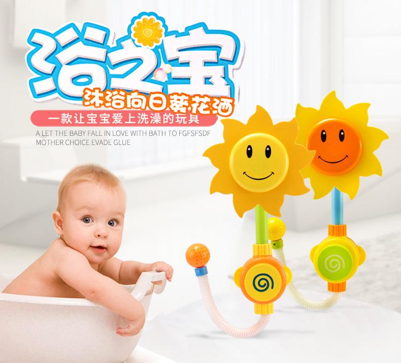 Ducha manual con forma de girasol para bebé, rociador eléctrico de girasol con dibujos animados, juguetes de baño para jugar con agua en verano