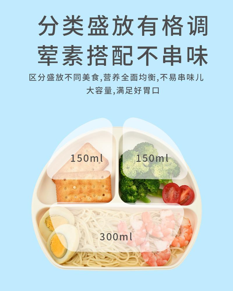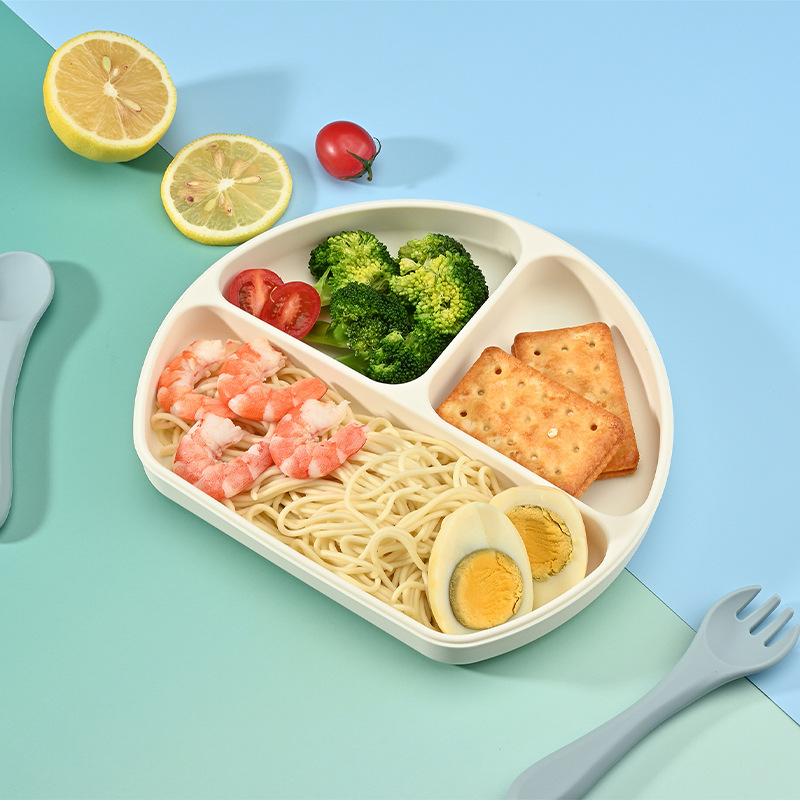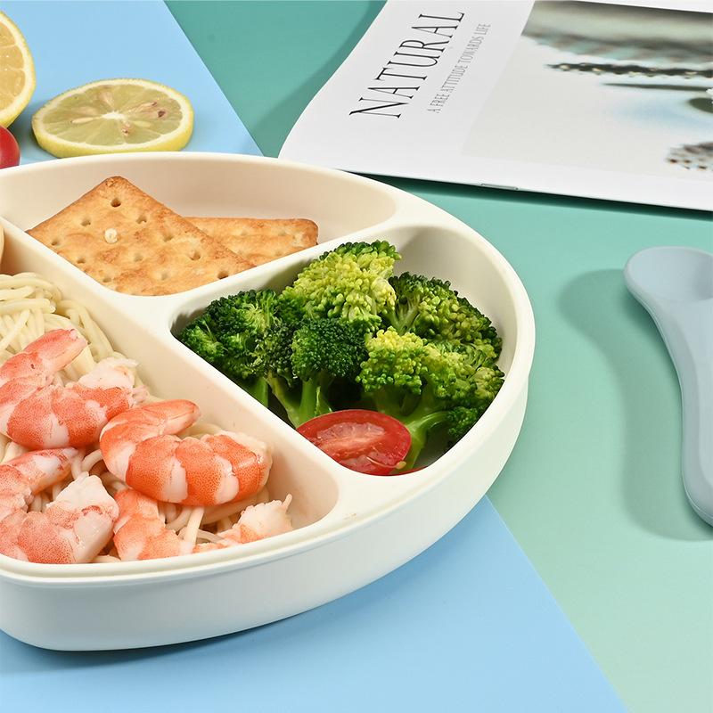 Vajilla de Silicona Amazon Tazón para Comida de Bebé Ventosa Plato Dividido de Una Pieza Comida para Niños Plato de Silicona Resistente a Caídas
