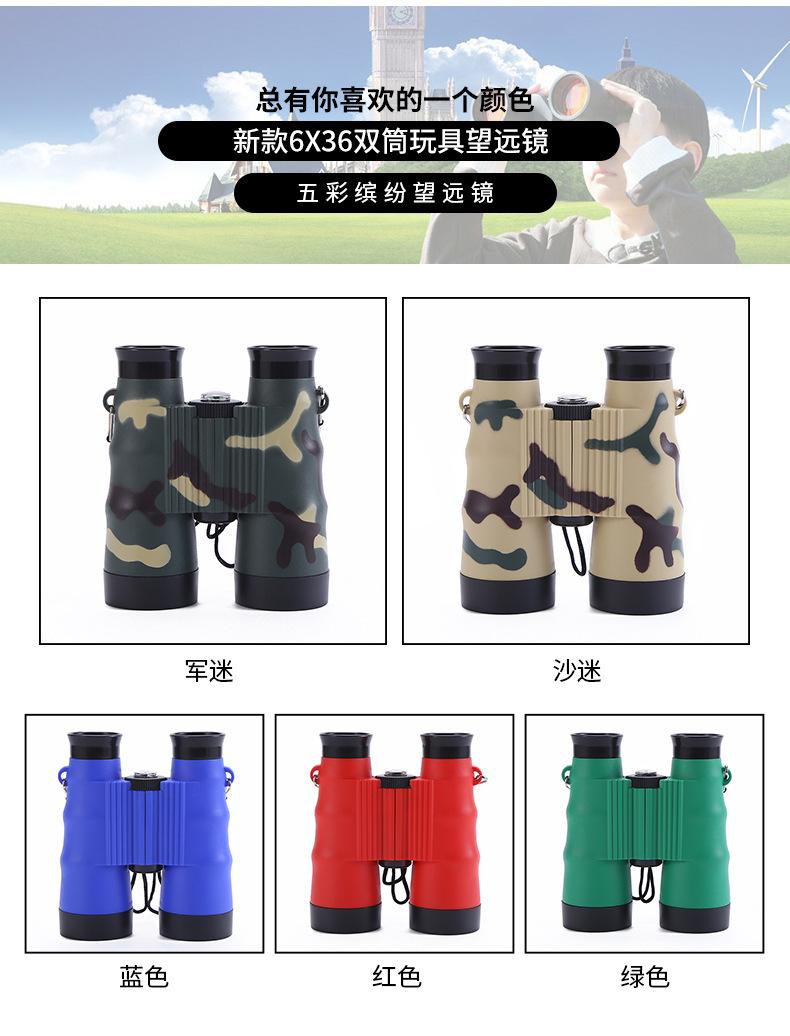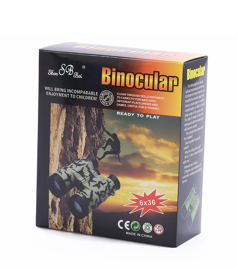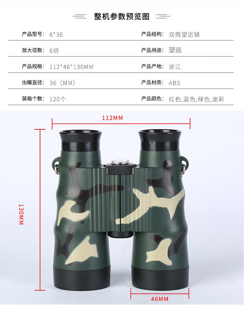 Venta directa de fábrica transfronteriza de juguetes para niños de alta definición, binoculares de plástico 6x36 con camuflaje de color.
