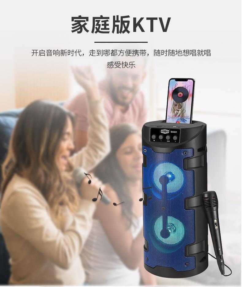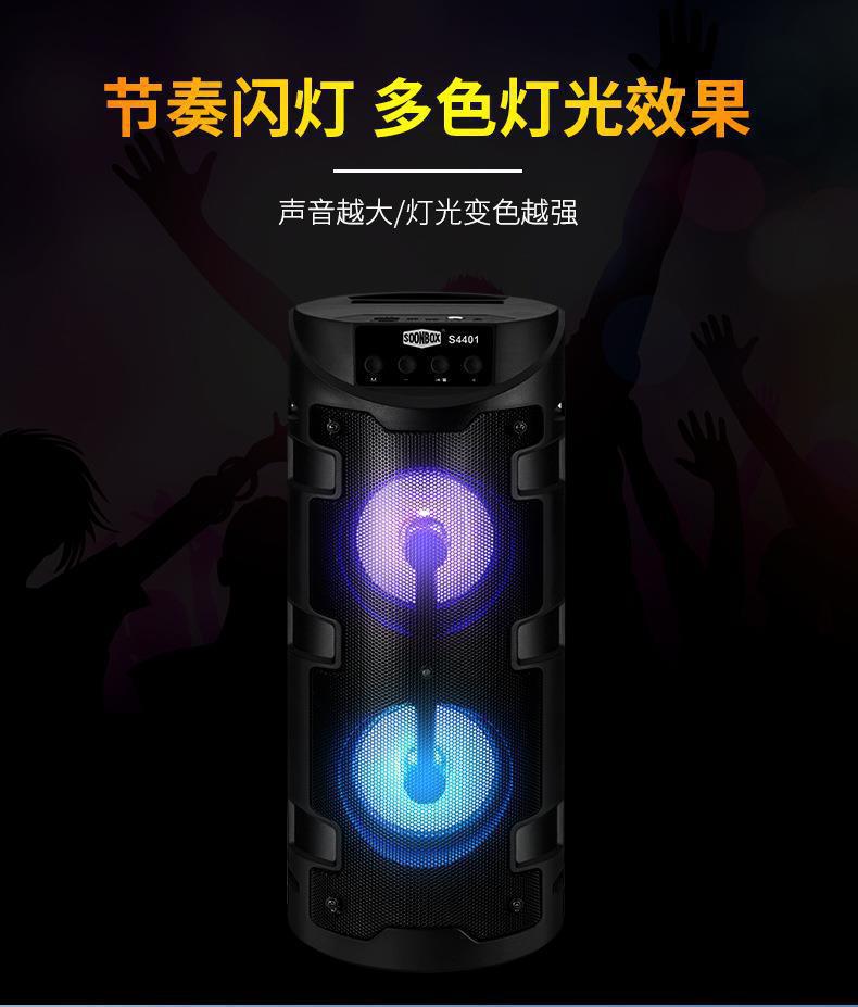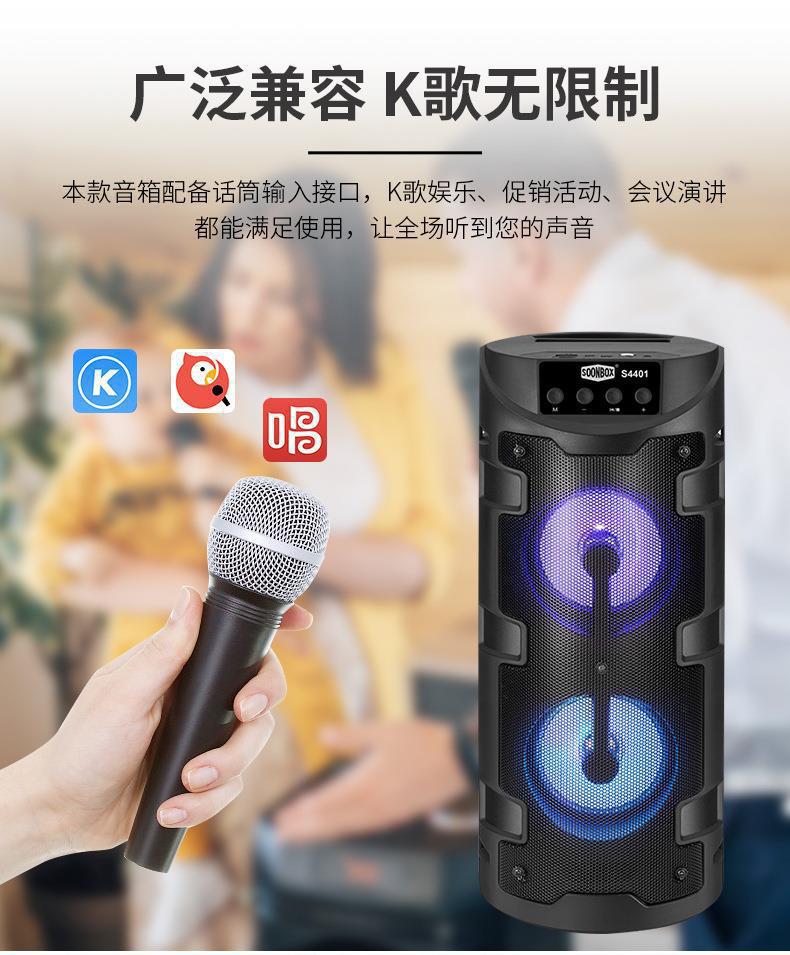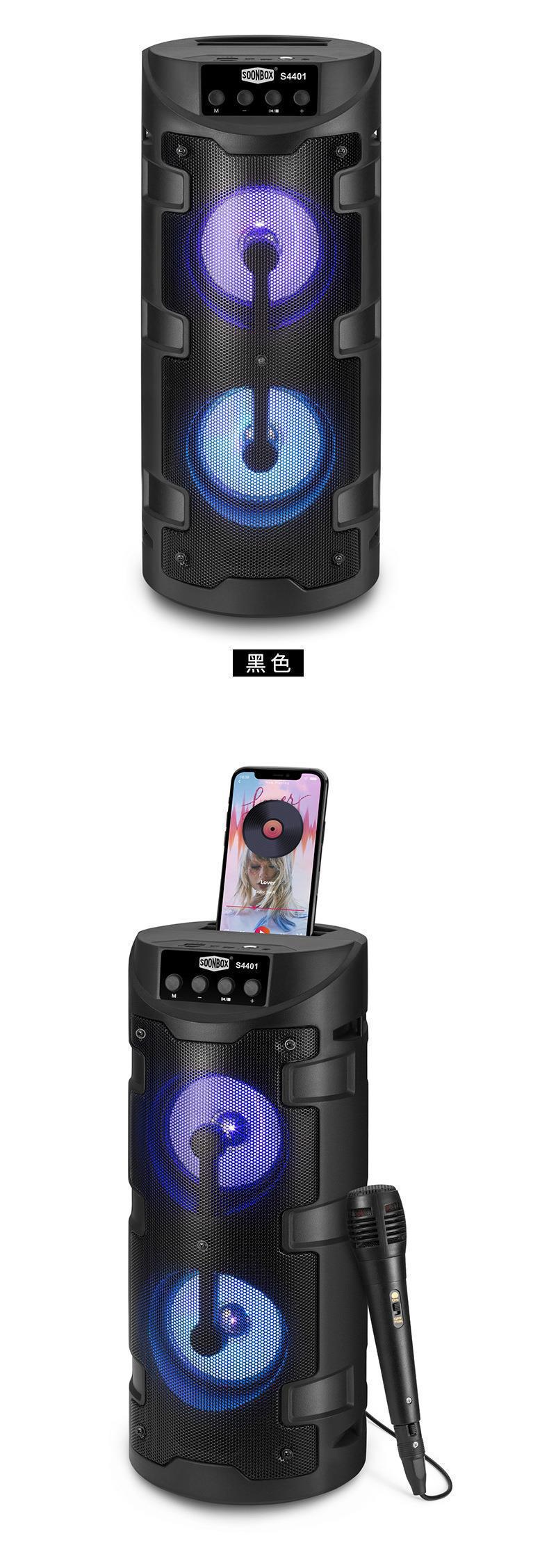 Tarjeta KTV familiar de comercio exterior con micrófono, altavoz inalámbrico Bluetooth, altavoz cuadrado de baile con luz de colores para exteriores