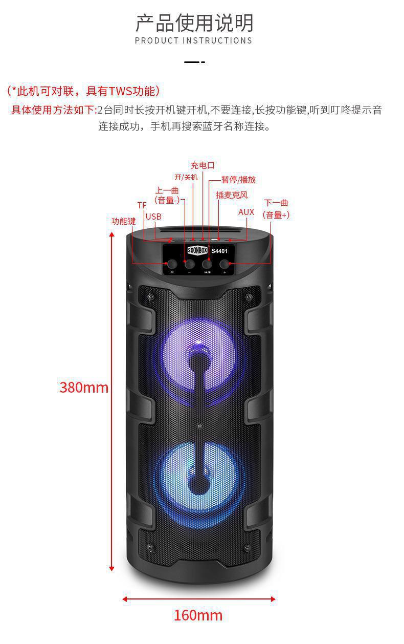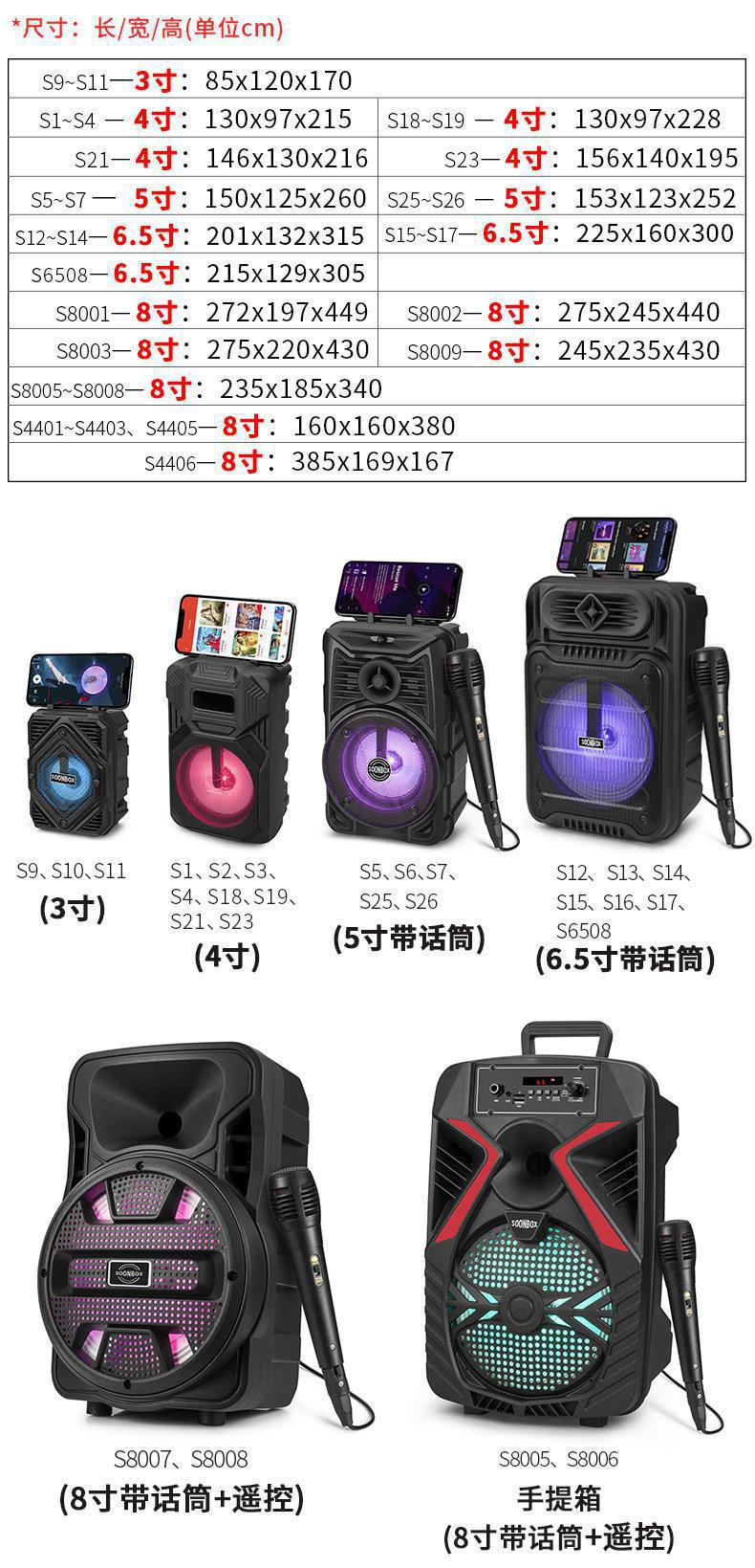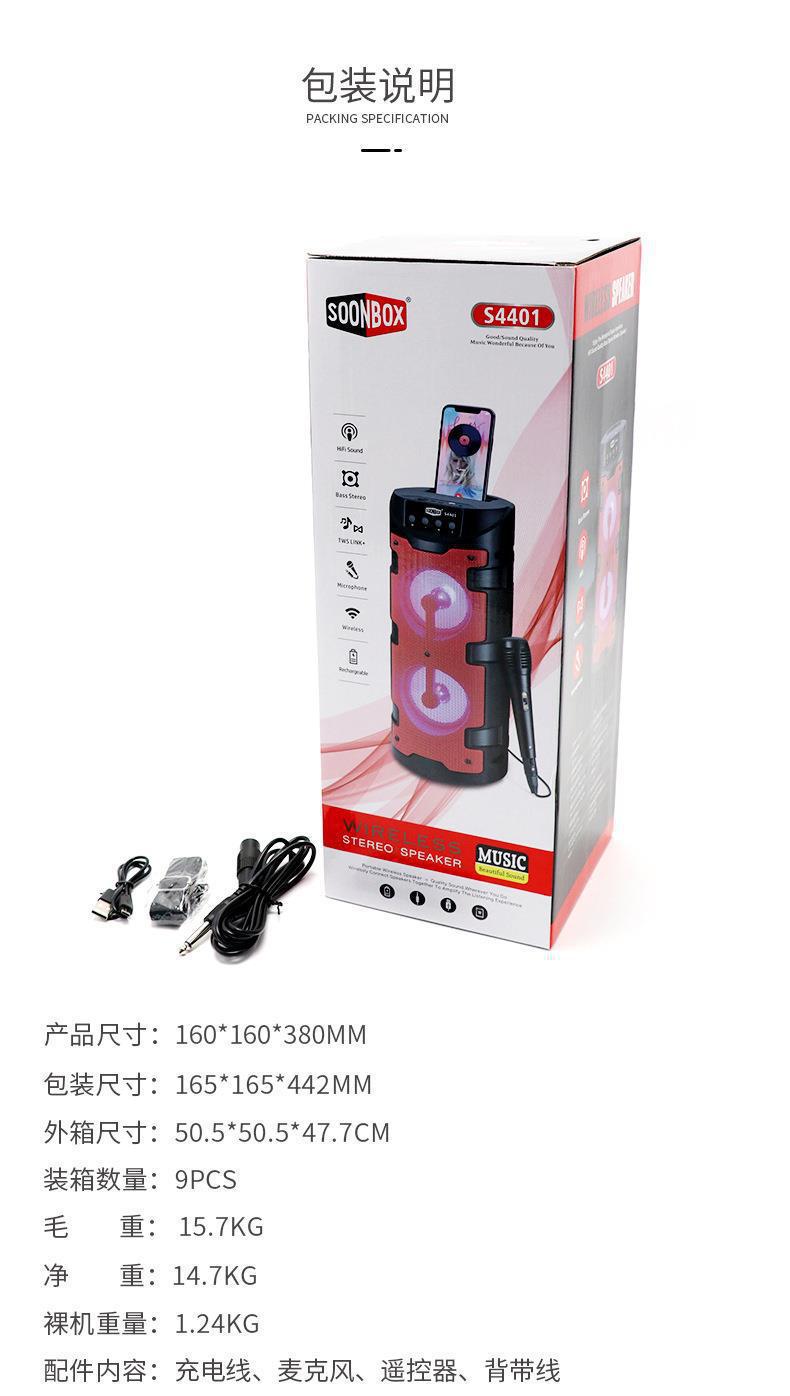 Tarjeta KTV familiar de comercio exterior con micrófono, altavoz inalámbrico Bluetooth, altavoz cuadrado de baile con luz de colores para exteriores