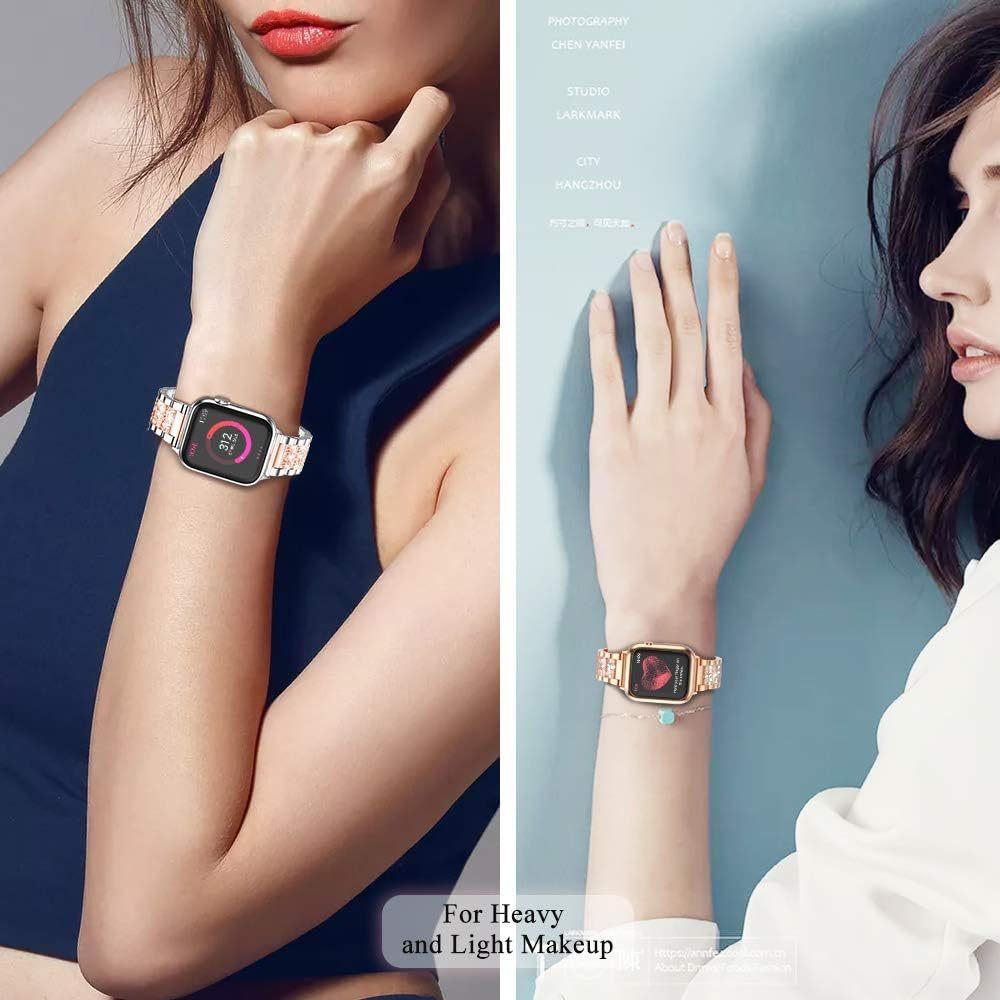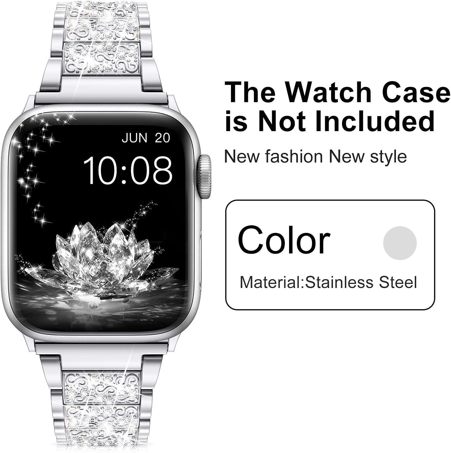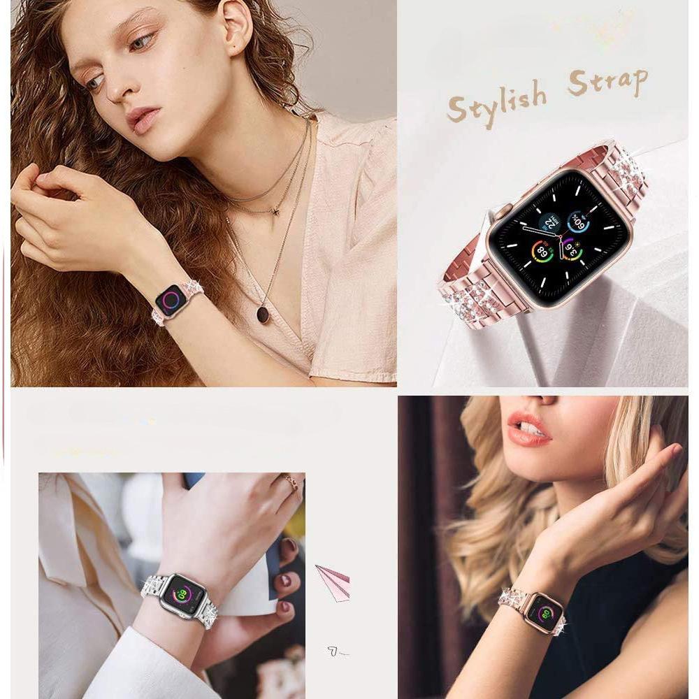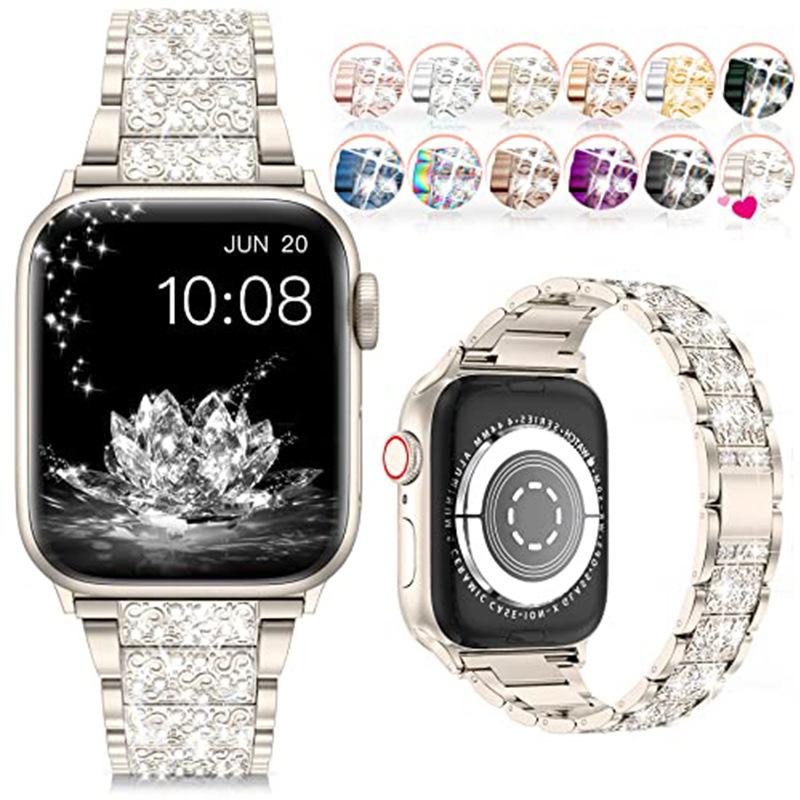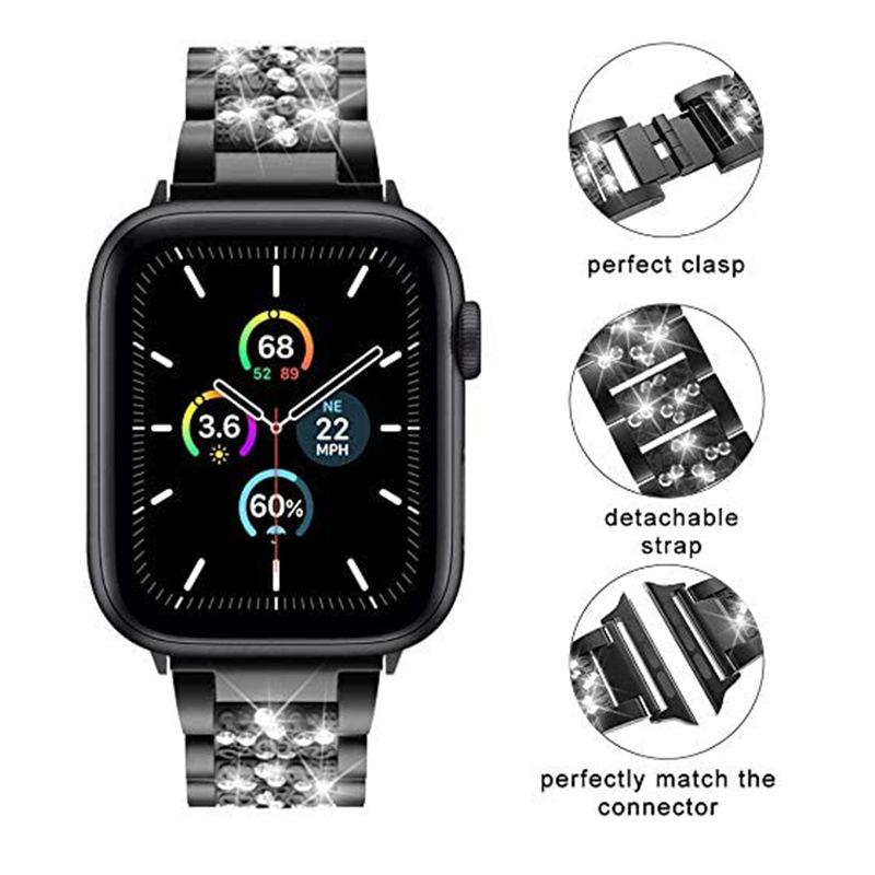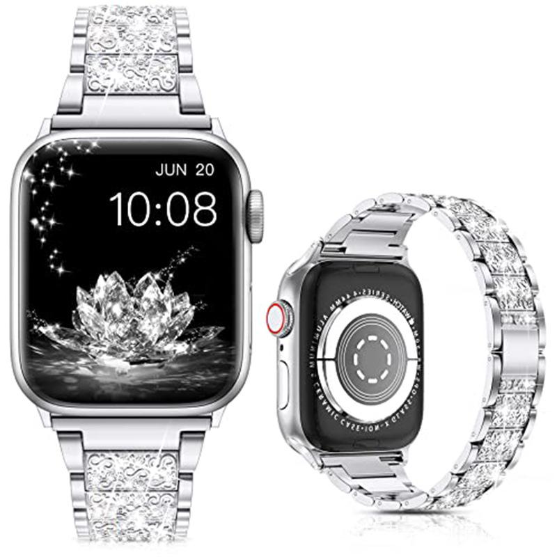 Correa de acero inoxidable con diamantes de imitación para Apple Watch