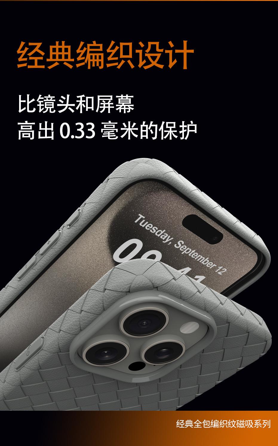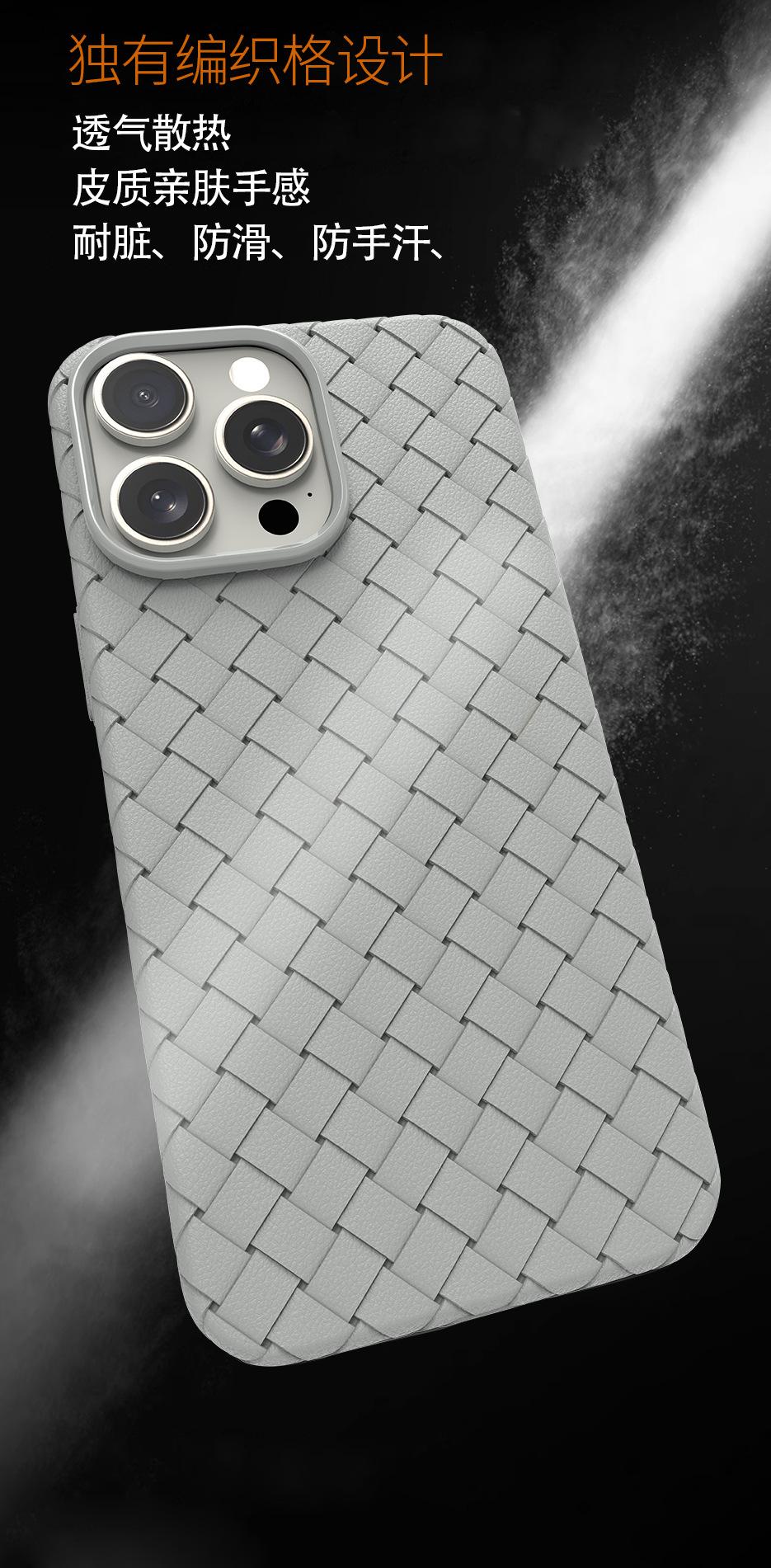 Funda para teléfono Apple 14promax con patrón tejido, transpirable, disipación de calor, protección contra caídas para iPhone 15 (13pro).
