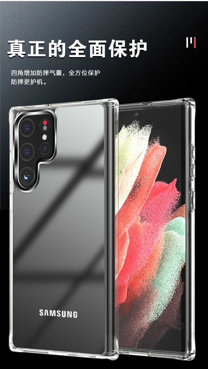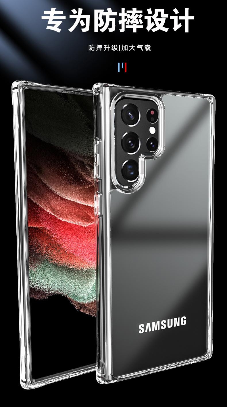 — Nombre del Producto : Nueva funda para teléfono Samsung s21 transparente funda protectora s22 Galaxy S21Ultra airbag anticaída TPU+PC