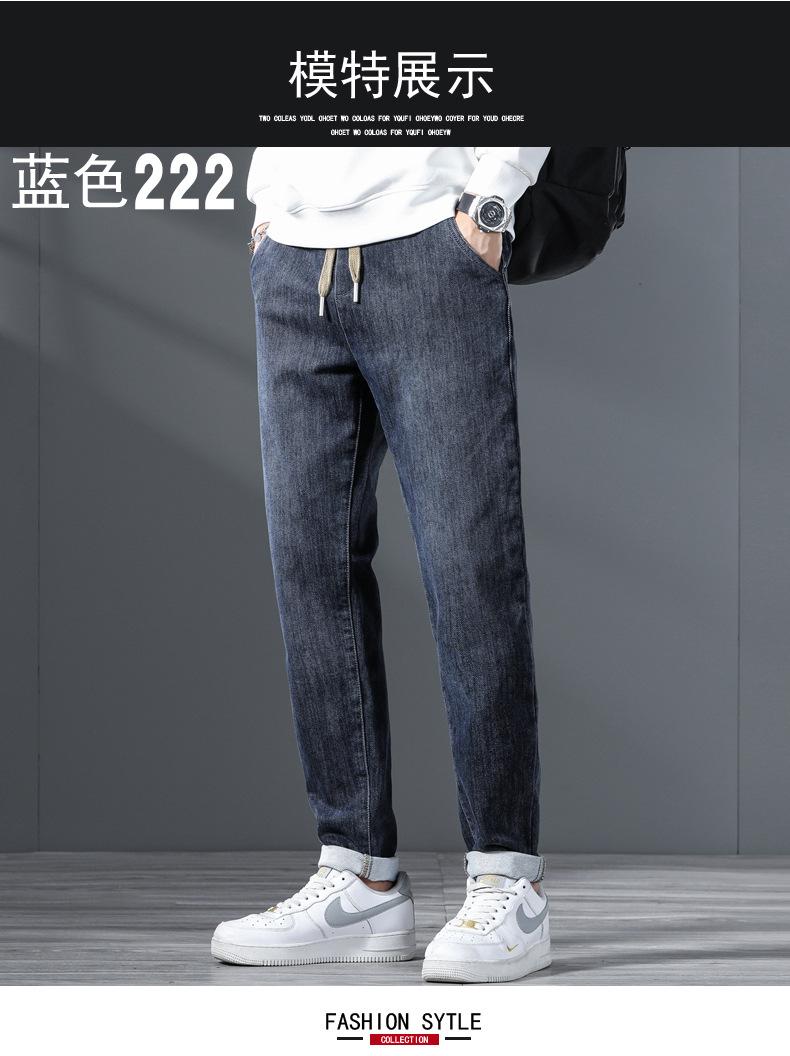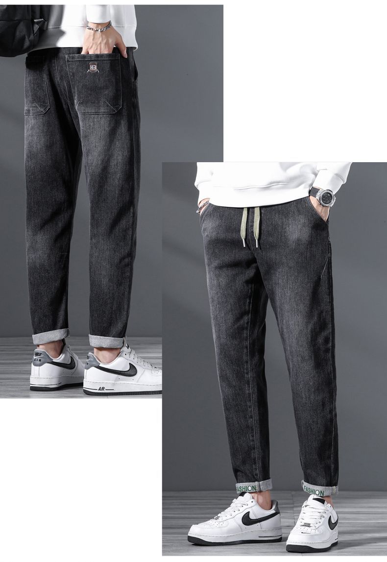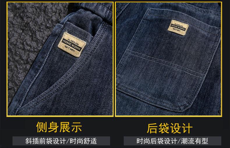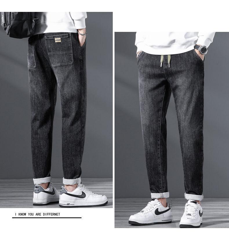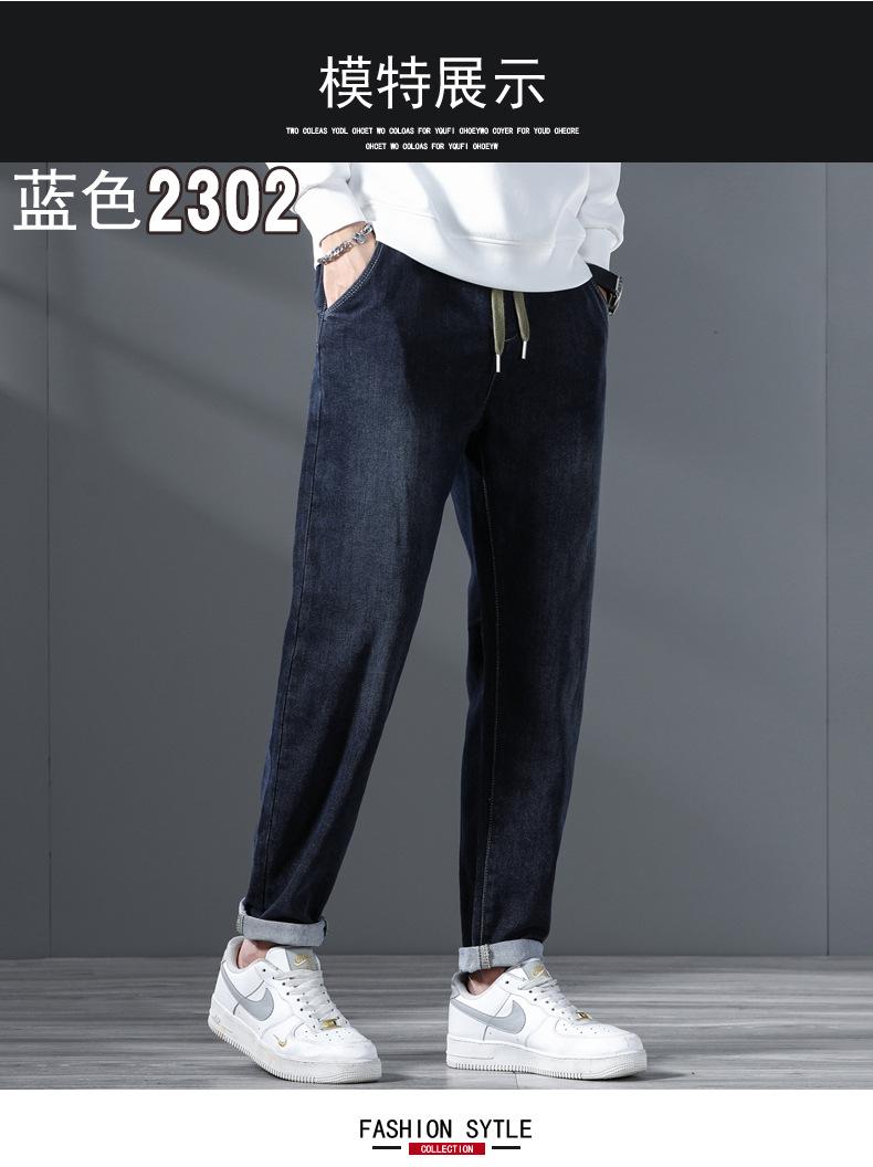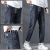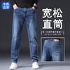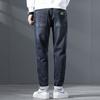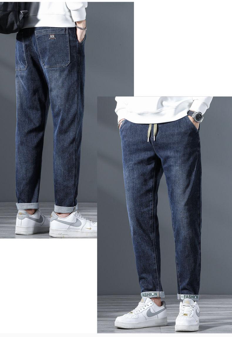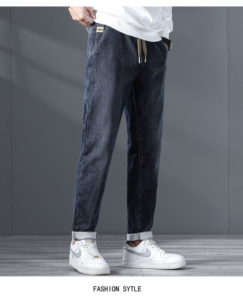 Pantalones vaqueros de alta gama con cintura elástica y forro polar para hombre, otoño e invierno, nuevos, sueltos, rectos, con cordón elástico, casuales, largos para hombre.