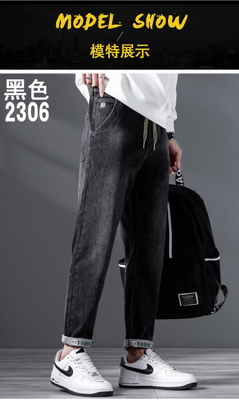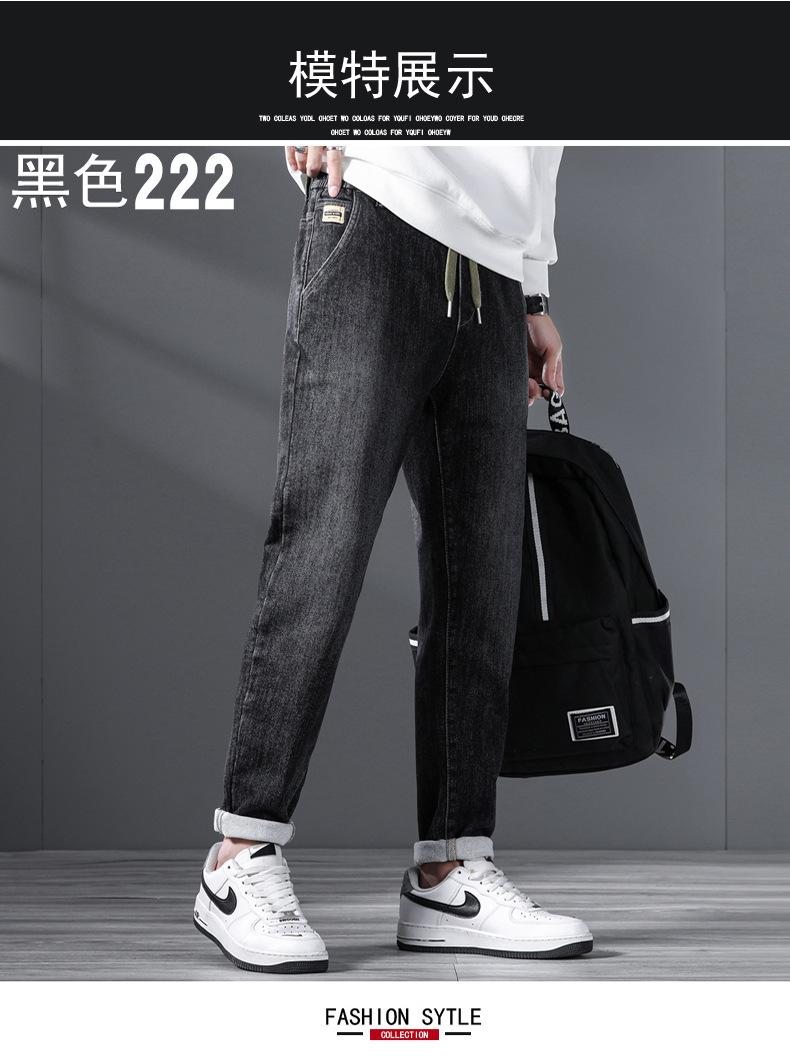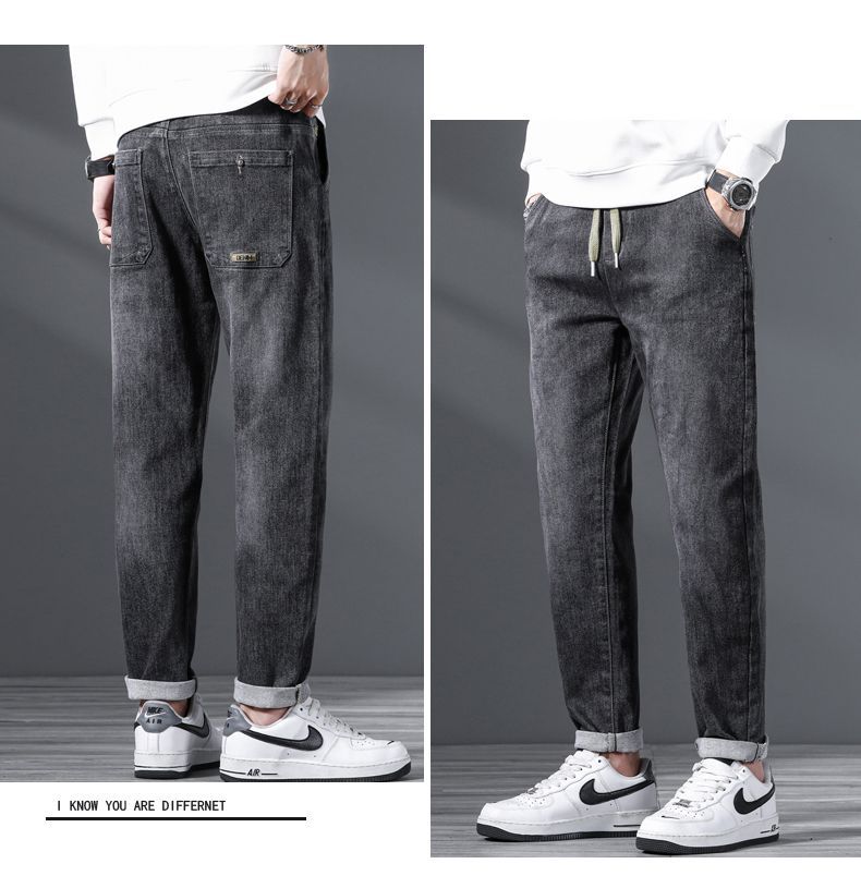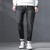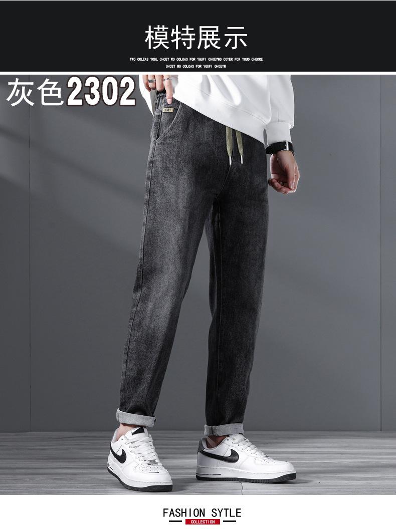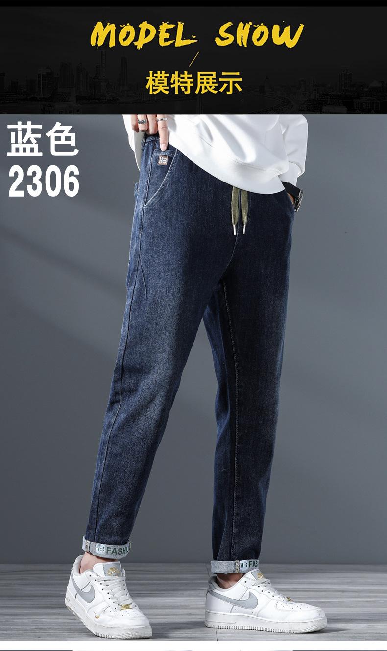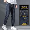Pantalones vaqueros de alta gama con cintura elástica y forro polar para hombre, otoño e invierno, nuevos, sueltos, rectos, con cordón elástico, casuales, largos para hombre.