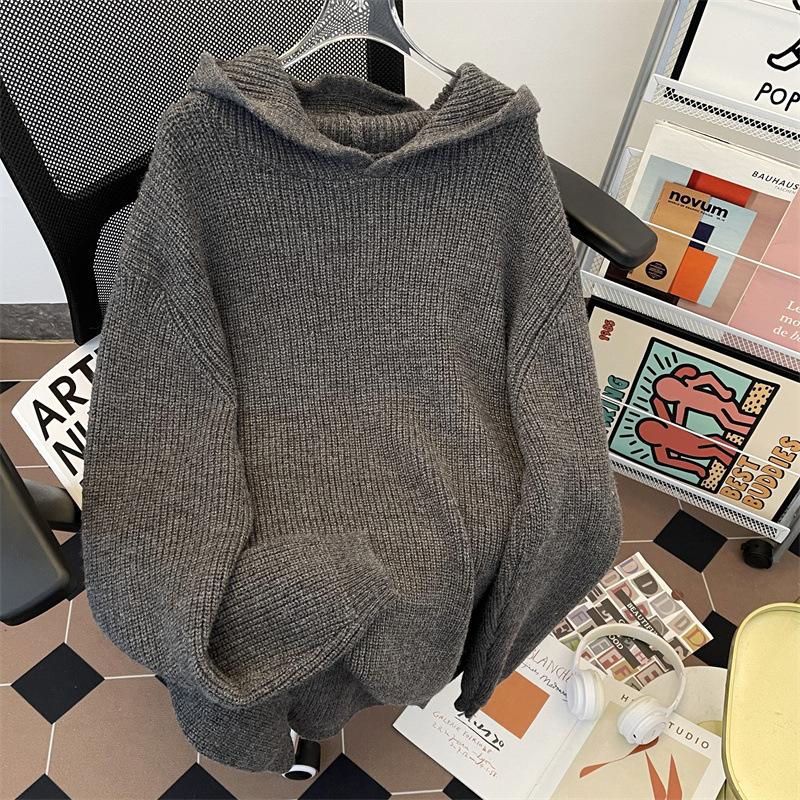 Suéter de color sólido para hombre, suéter con capucha retro de estilo americano de invierno, suéter de alta calidad, novedad de 2024