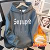 Sudadera con capucha americana gruesa de alta gama con forro polar y estampado de multitud para niños y niñas, nueva de otoño e invierno