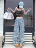 Jeans rectos holgados de estilo americano High Street, de color liso, lavados, estilo Machete, con diseño Sense Micro-la, 2024